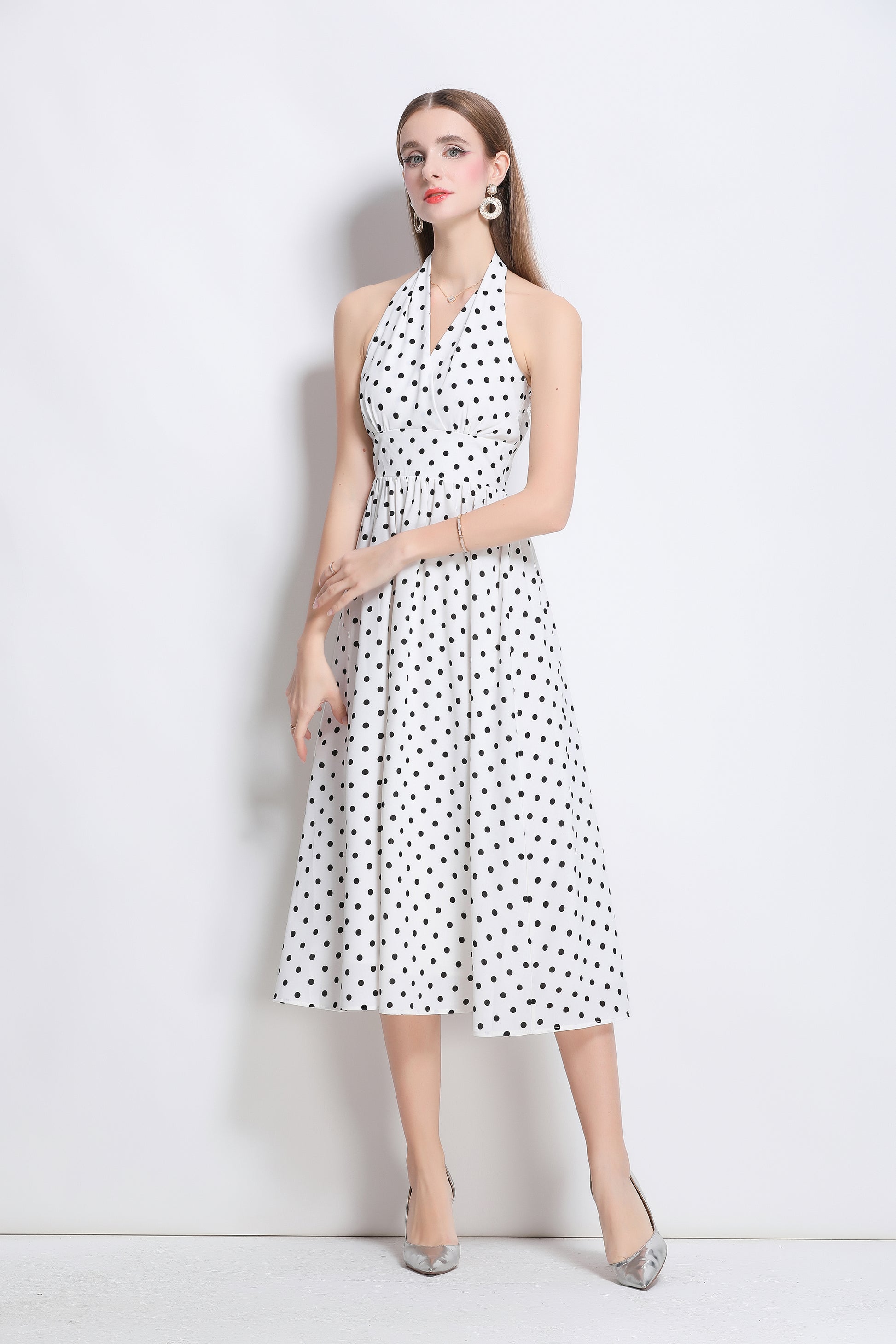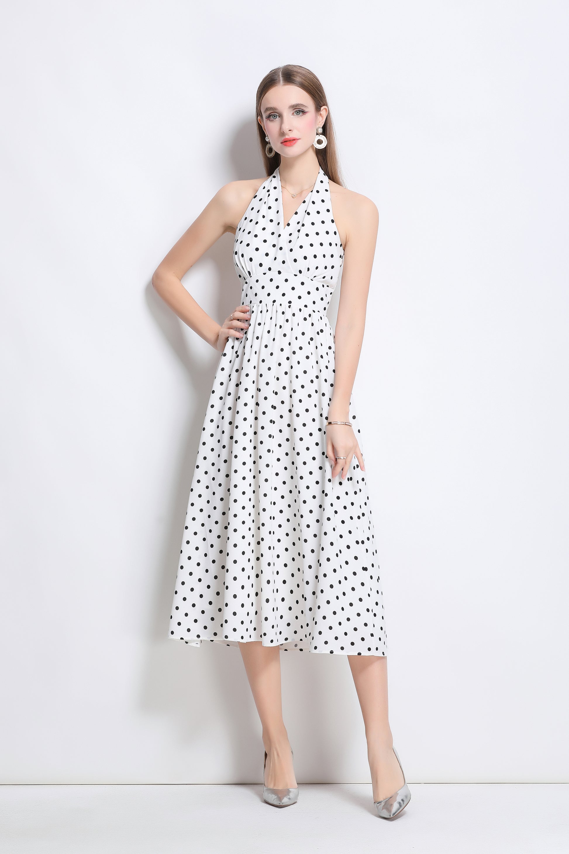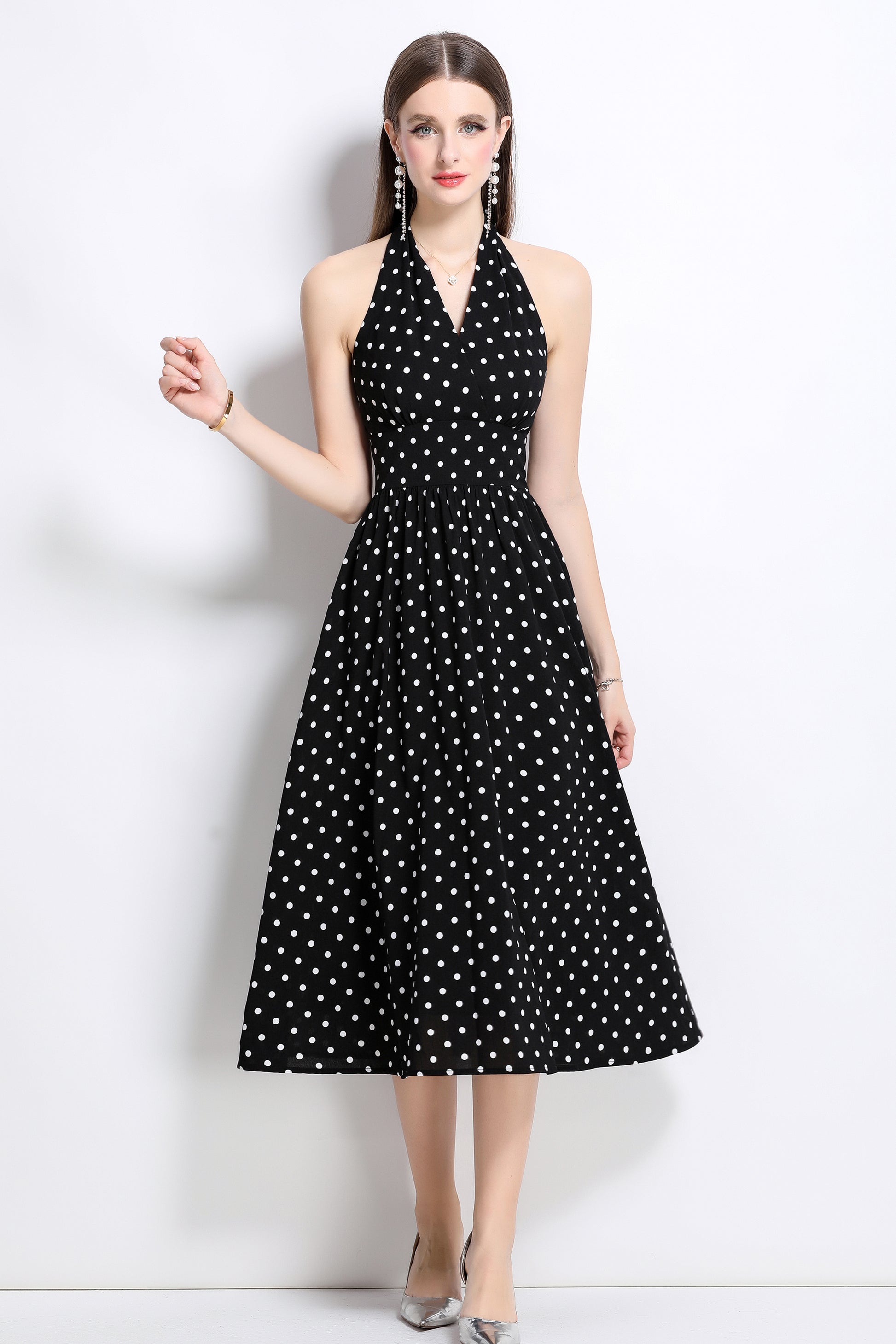 - Features: Polka dot, V-neck, sleeveless, backless, halter, back pleat, high waist, pleat, midi; Using lightweight breathable fabrics, comfortable to wear, suitable for spring and summer seasons
