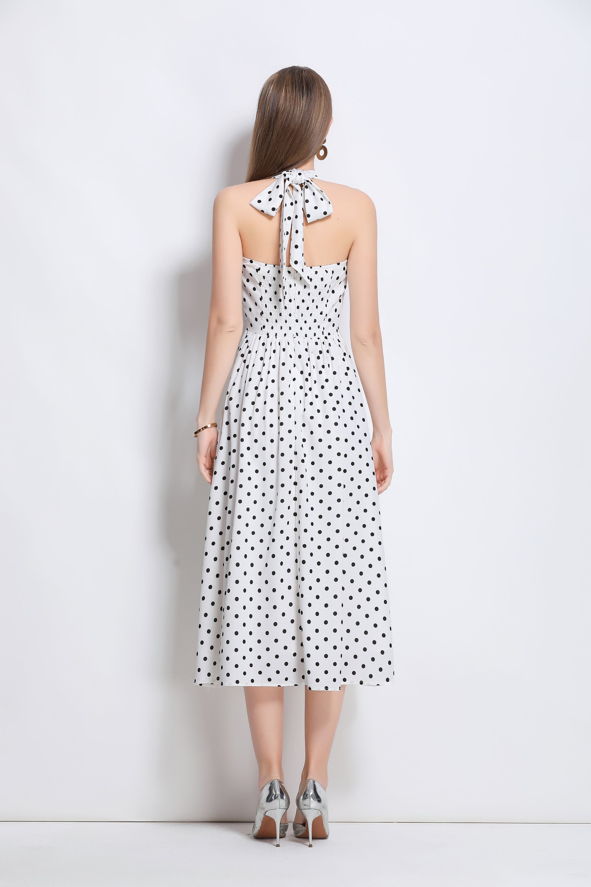 Women's Polka Dot Halter V Neck Backless Midi Dress