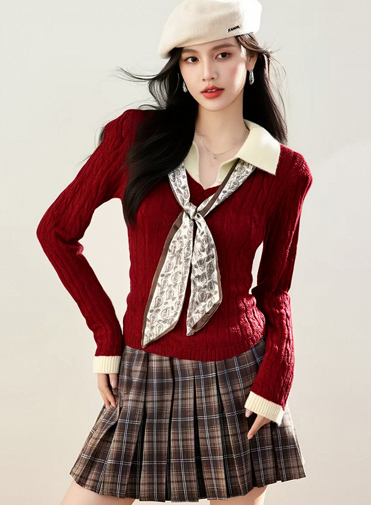 - Features: Color block sweaters,Polo shirts,paired with a long silk satin tie,pullover sweater,cable knit sweater,slim fit,lapel v-neck sweater.