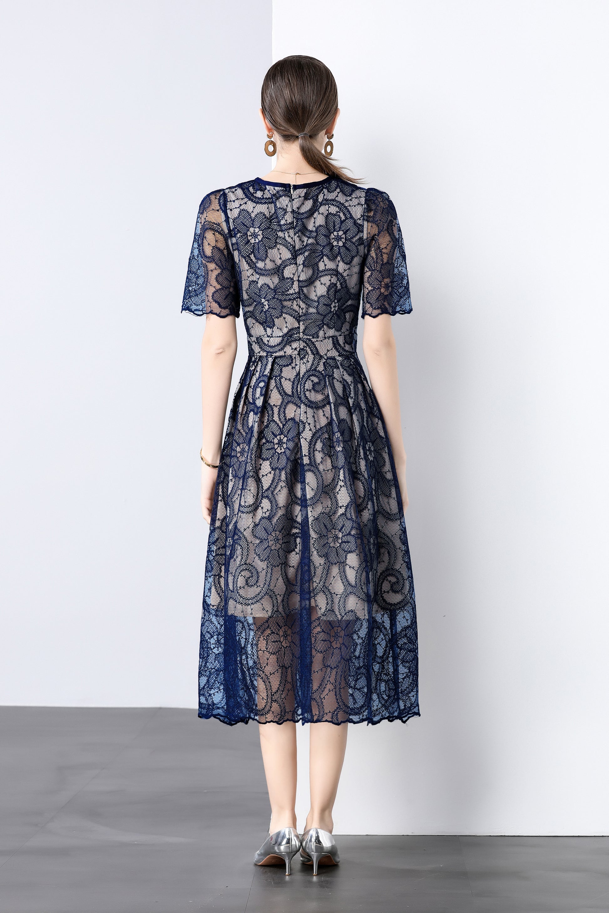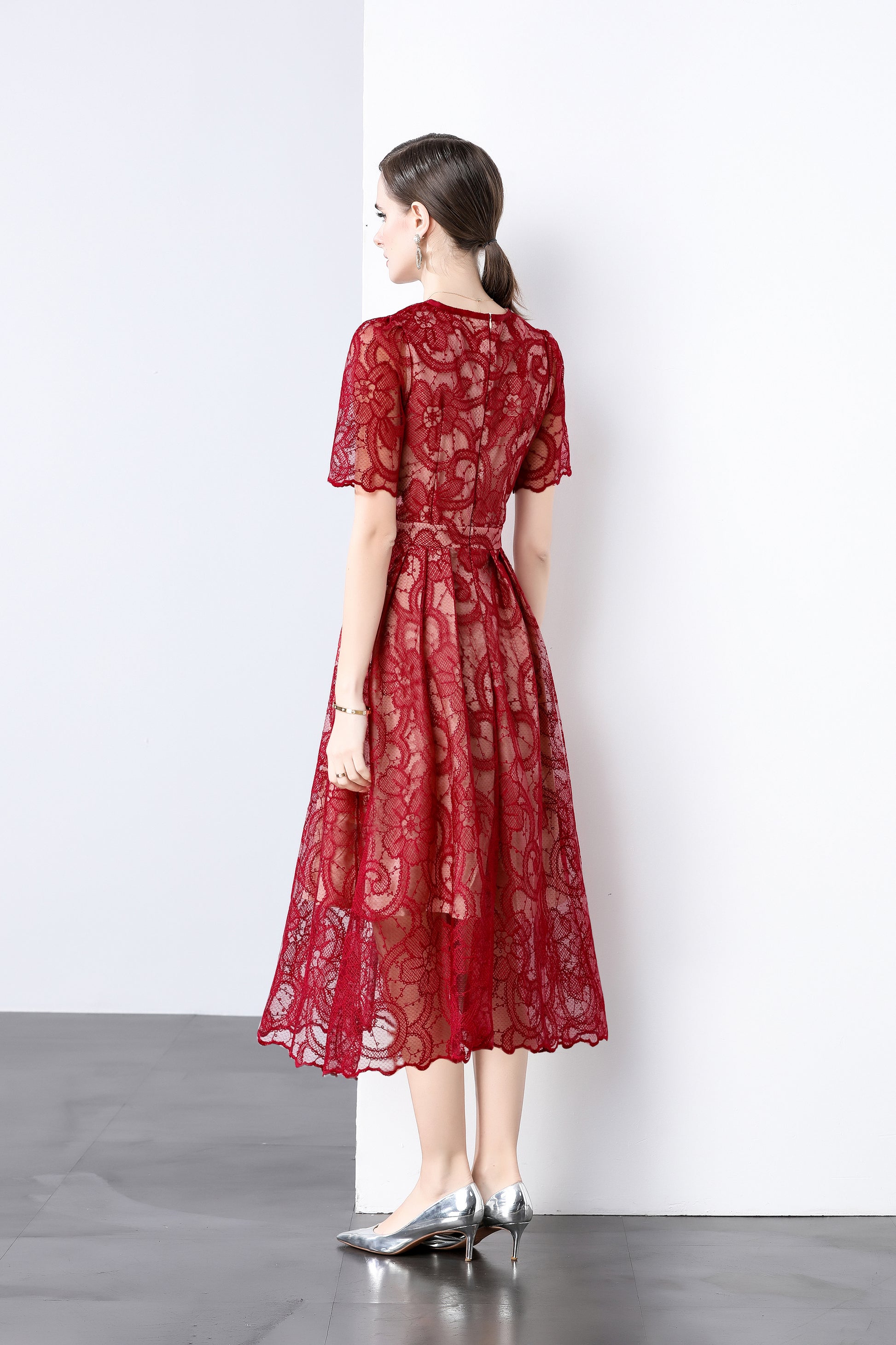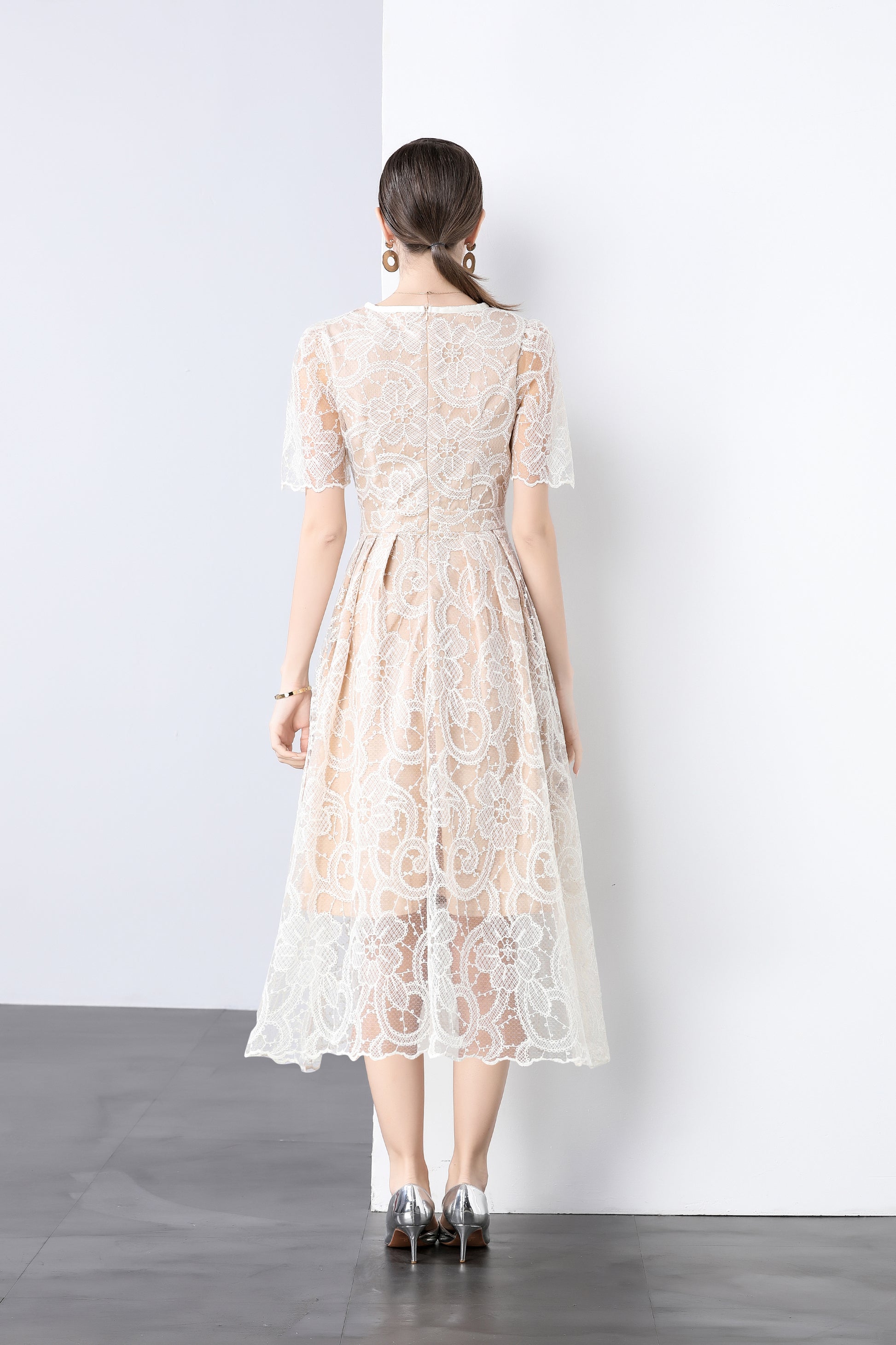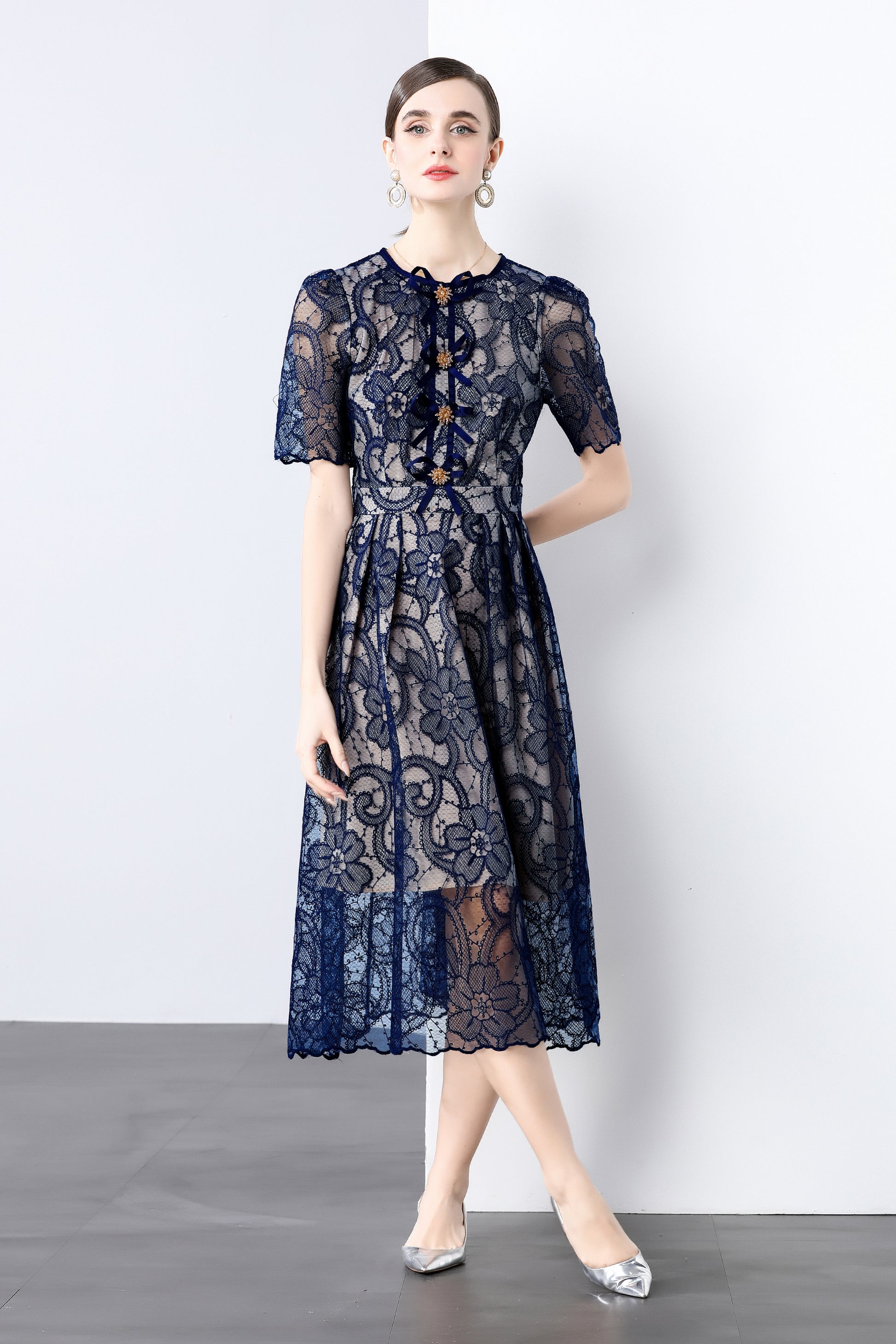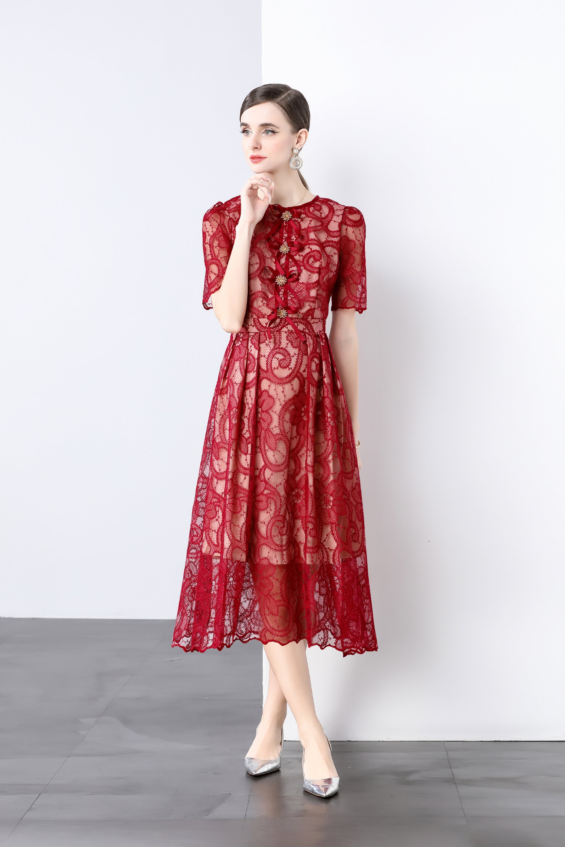 - Features: Classic crewneck,puff sleeve,solid color, high waist, single-breasted,lightweight and breathable embroidery mesh lace, a midi flowy dress.