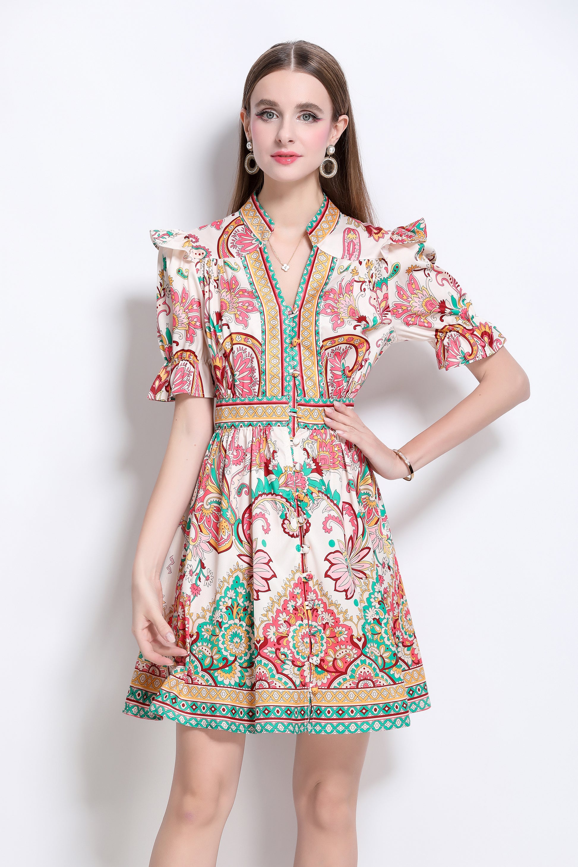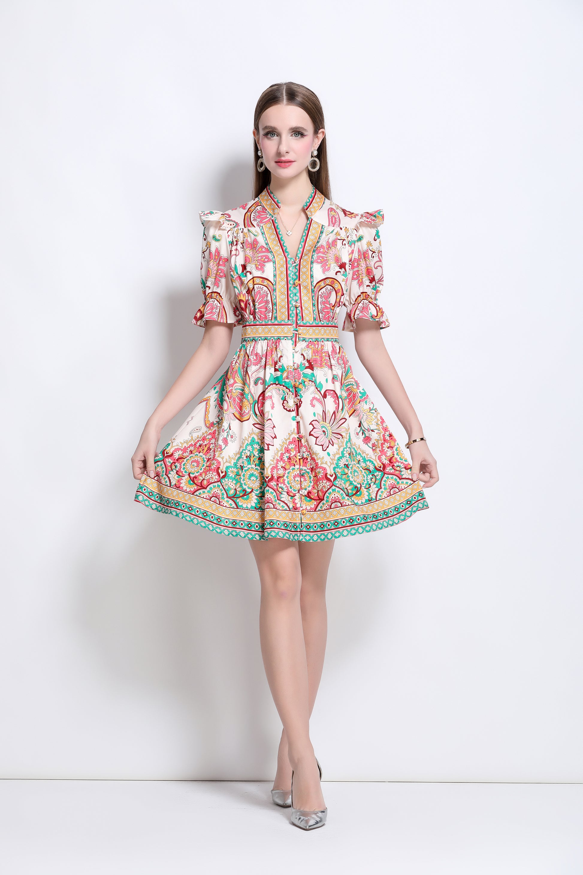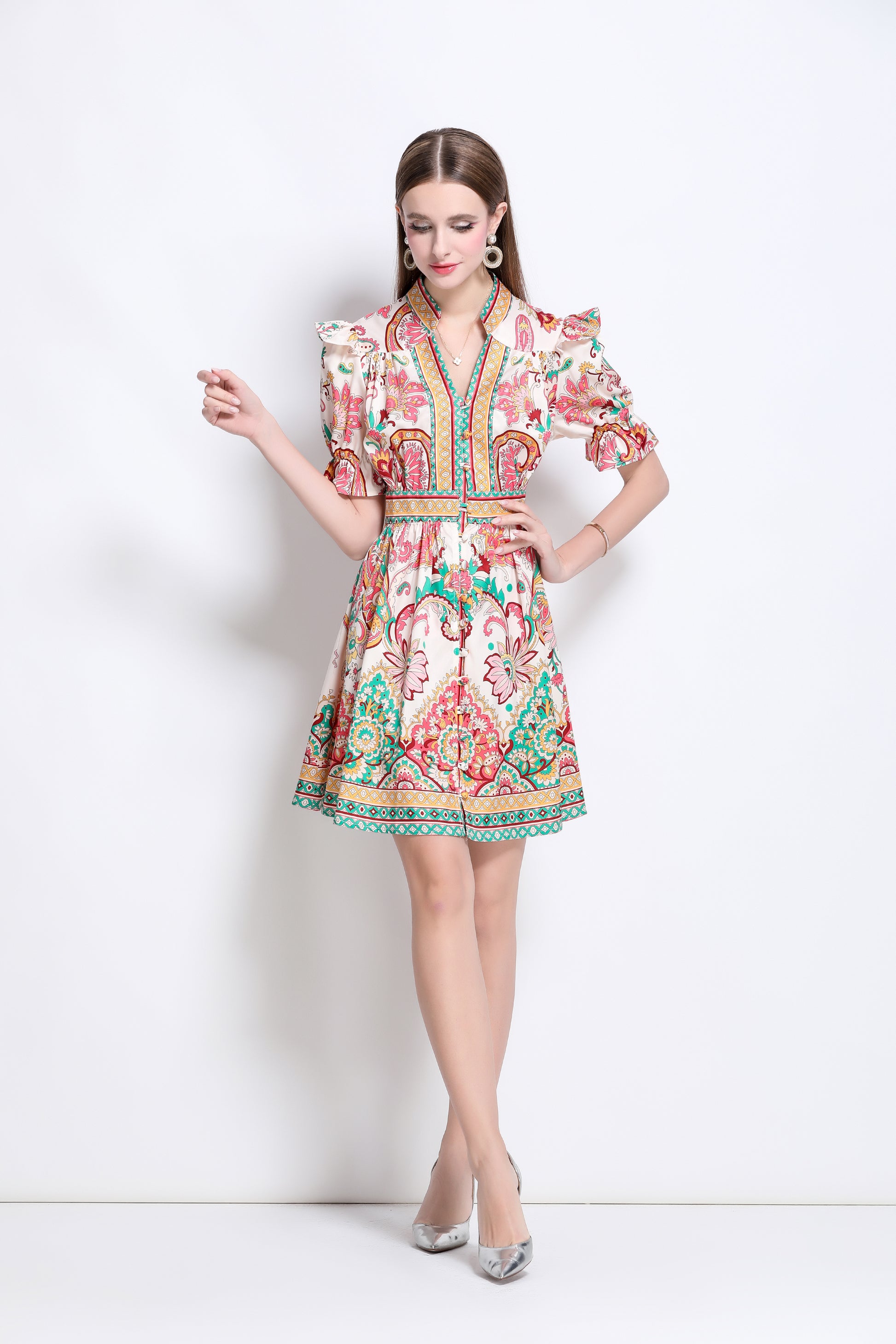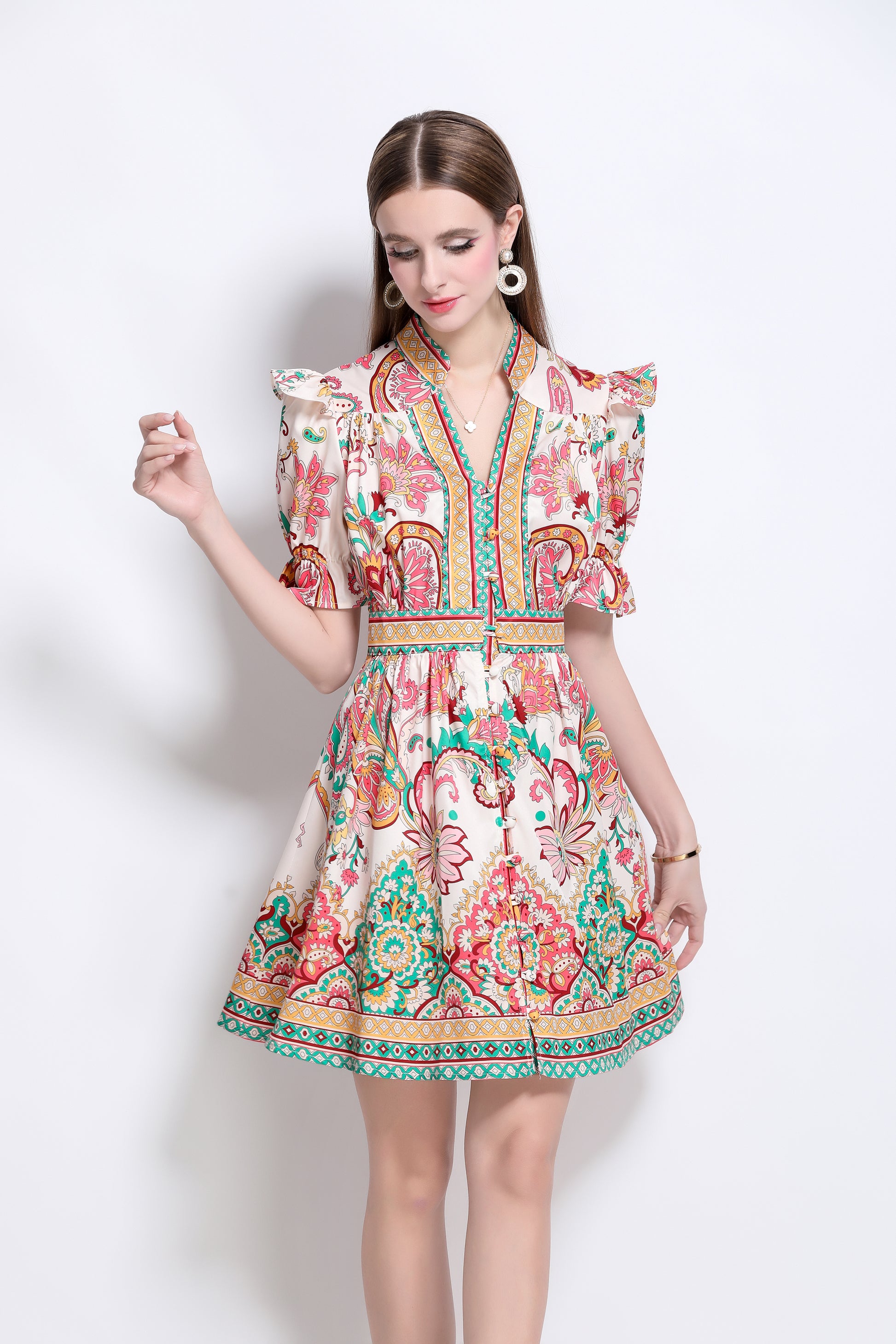 • Features:V neckline,Short Puff Sleeve,Mini length,Floral print,A-line,flowy dresses for women. Super Soft,Comfortableand Breathable.