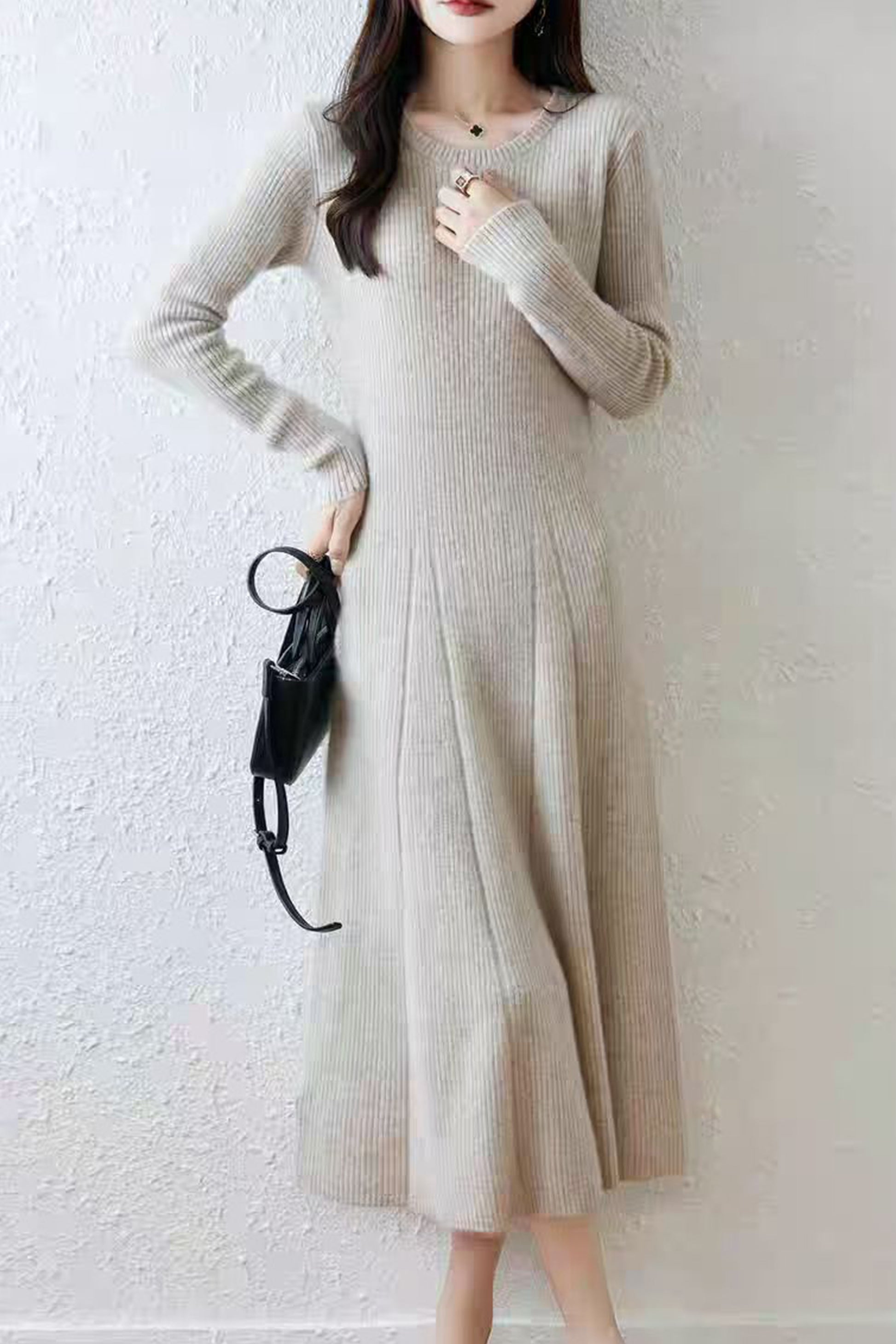- Features: Round neck,long sleeve,a-line,slim fit,solid color dress,ribbed knit sweater dress,elegant fall sweater dress,long sleeve winter sweater dress,fashion long dress.