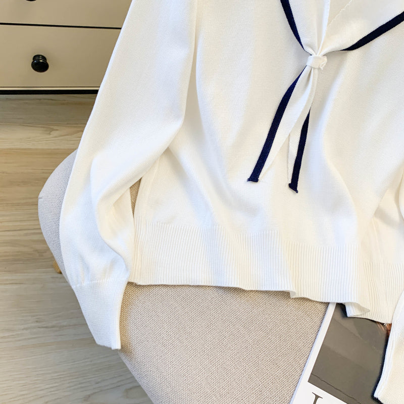 Women's Sailor Collar V-Neck Knit Sweater Top