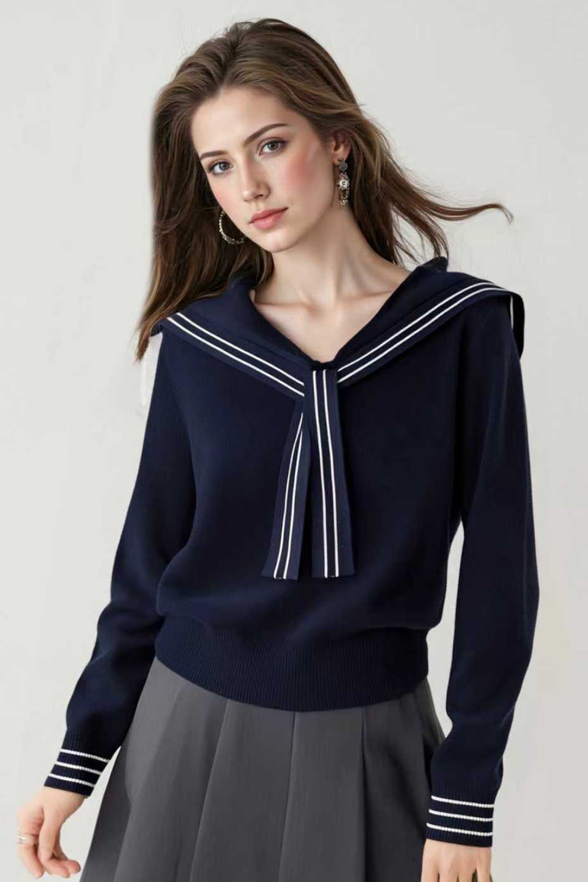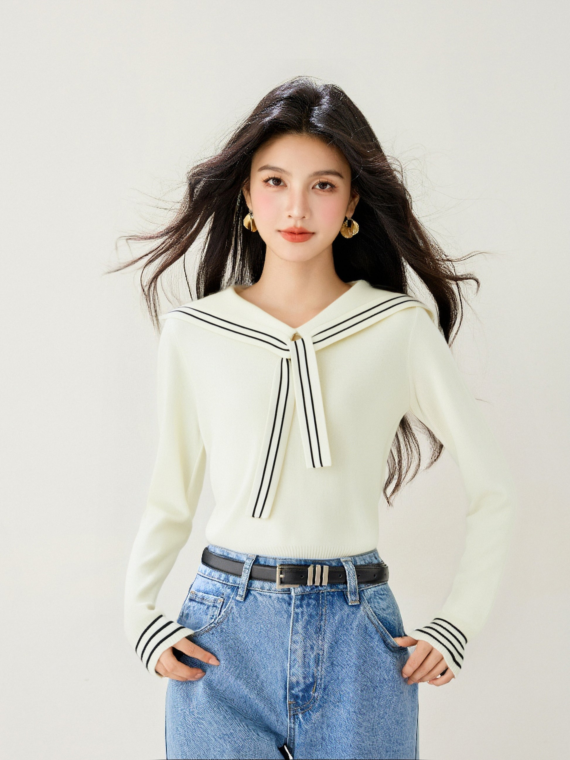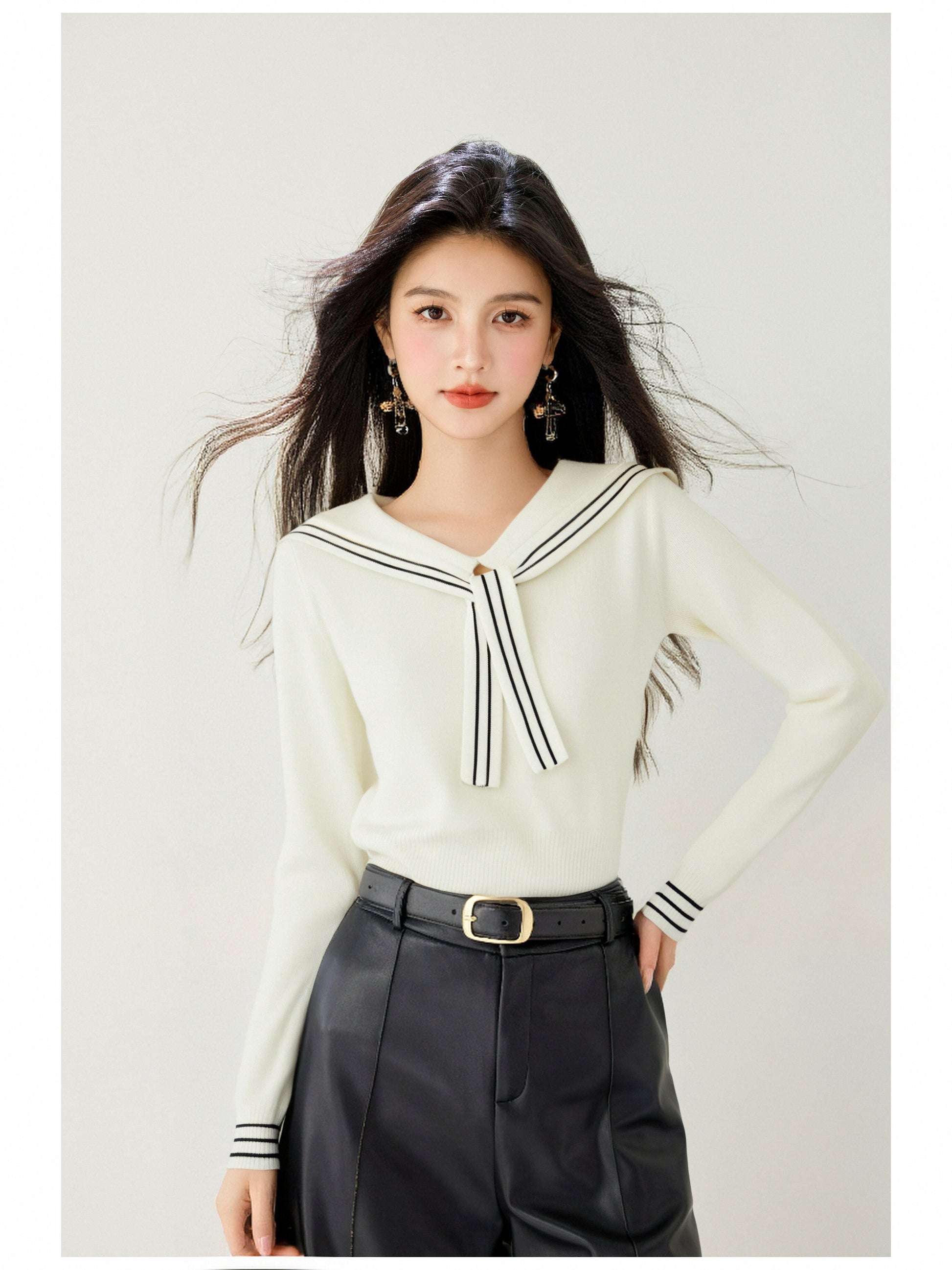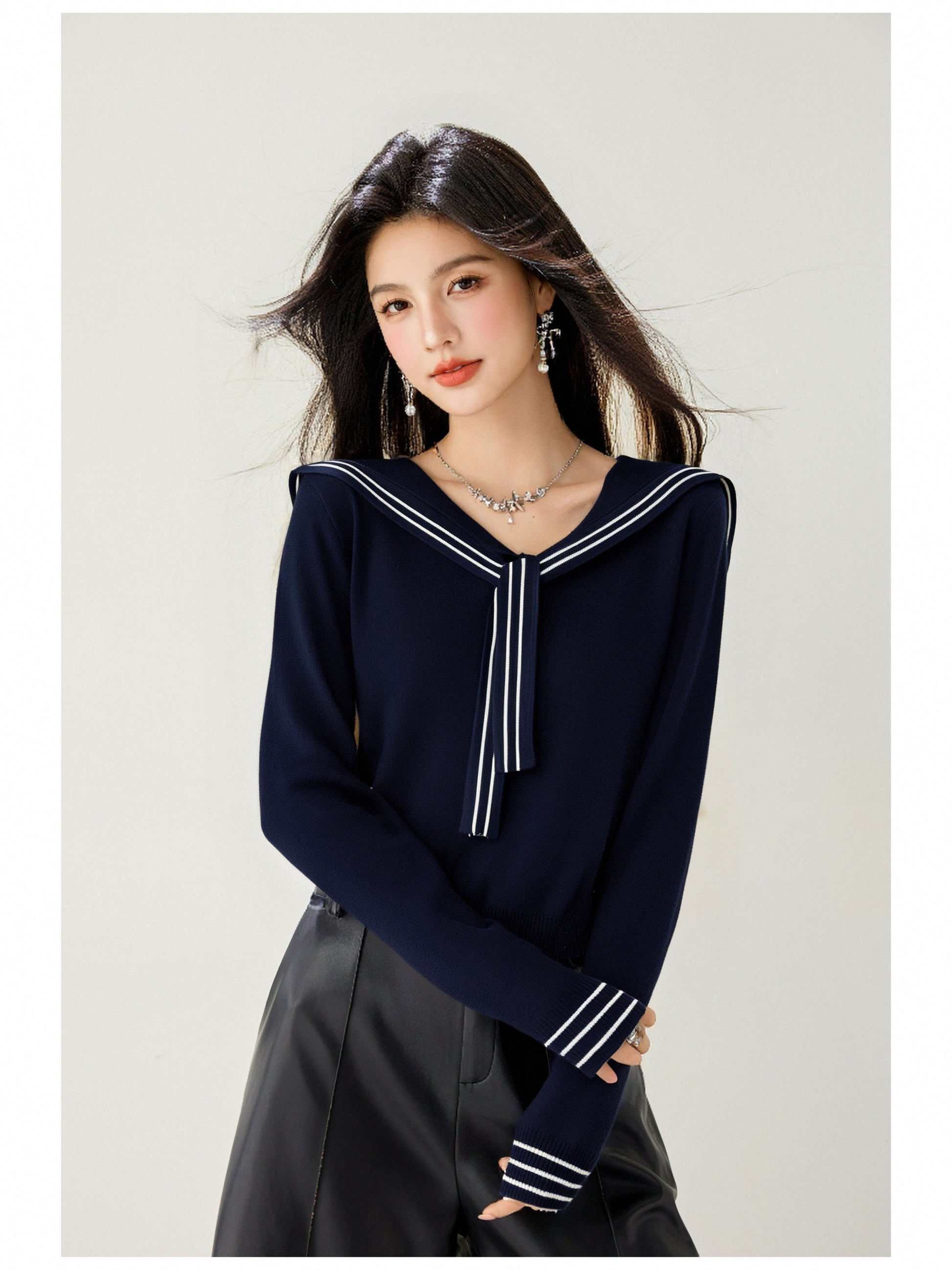 - Match:This Specil sailor collar v-neck Casual loose sweater tops Well with Leggings, Jeans, Skinny jeans, Black Pant, Necklace, High Heels and so on which is Suitable for a Casual Everyday Look.