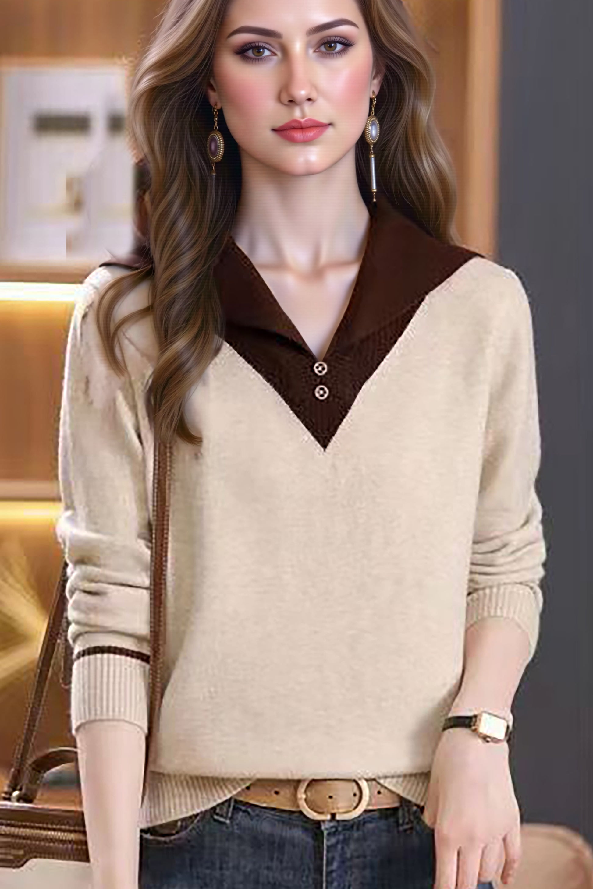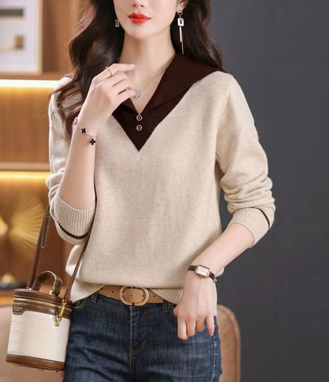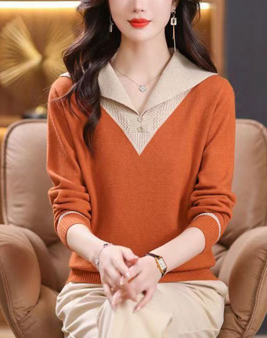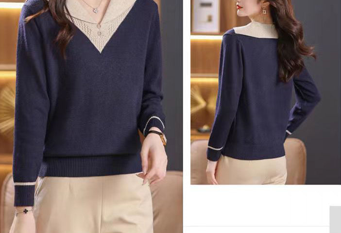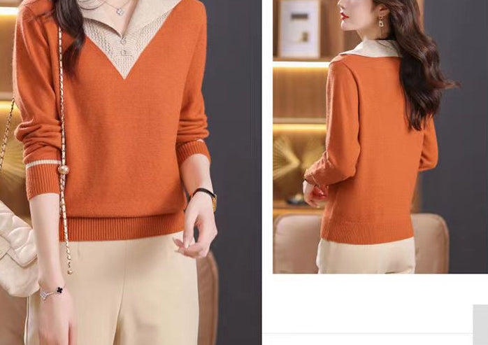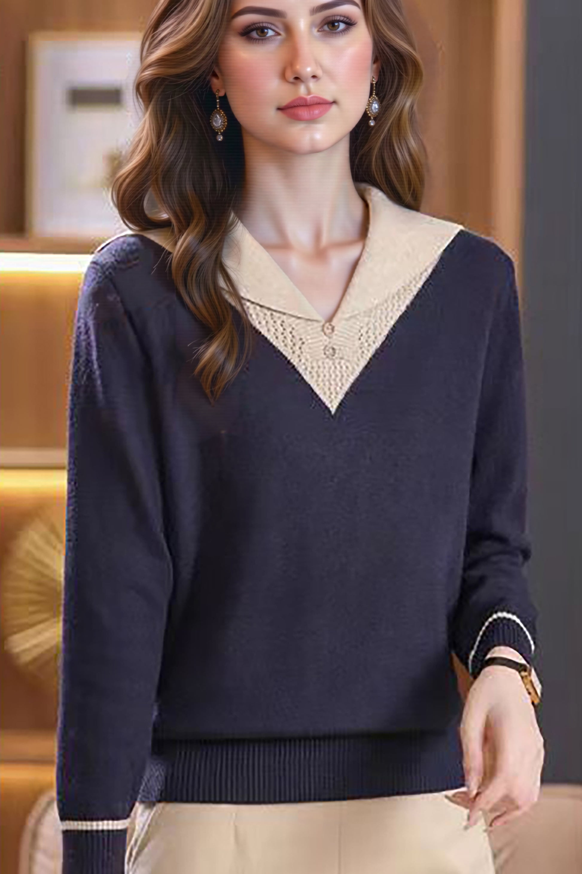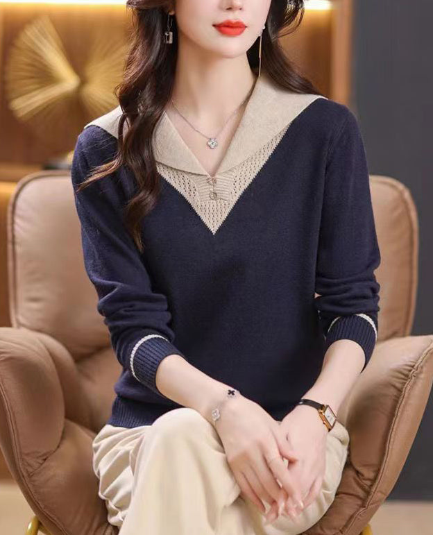 - Features: sailor collar, long sleeves,v-neck, color-blocking knitted sweater, basic tunic tops.It will be great for early fall or winter.