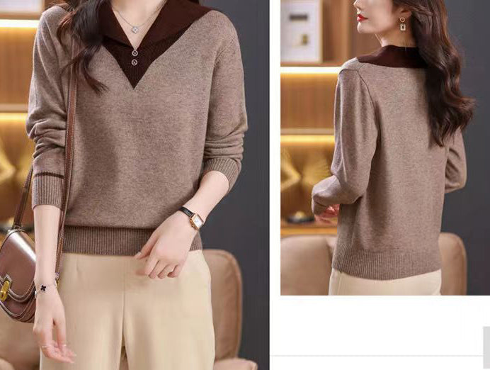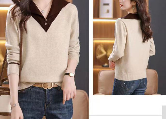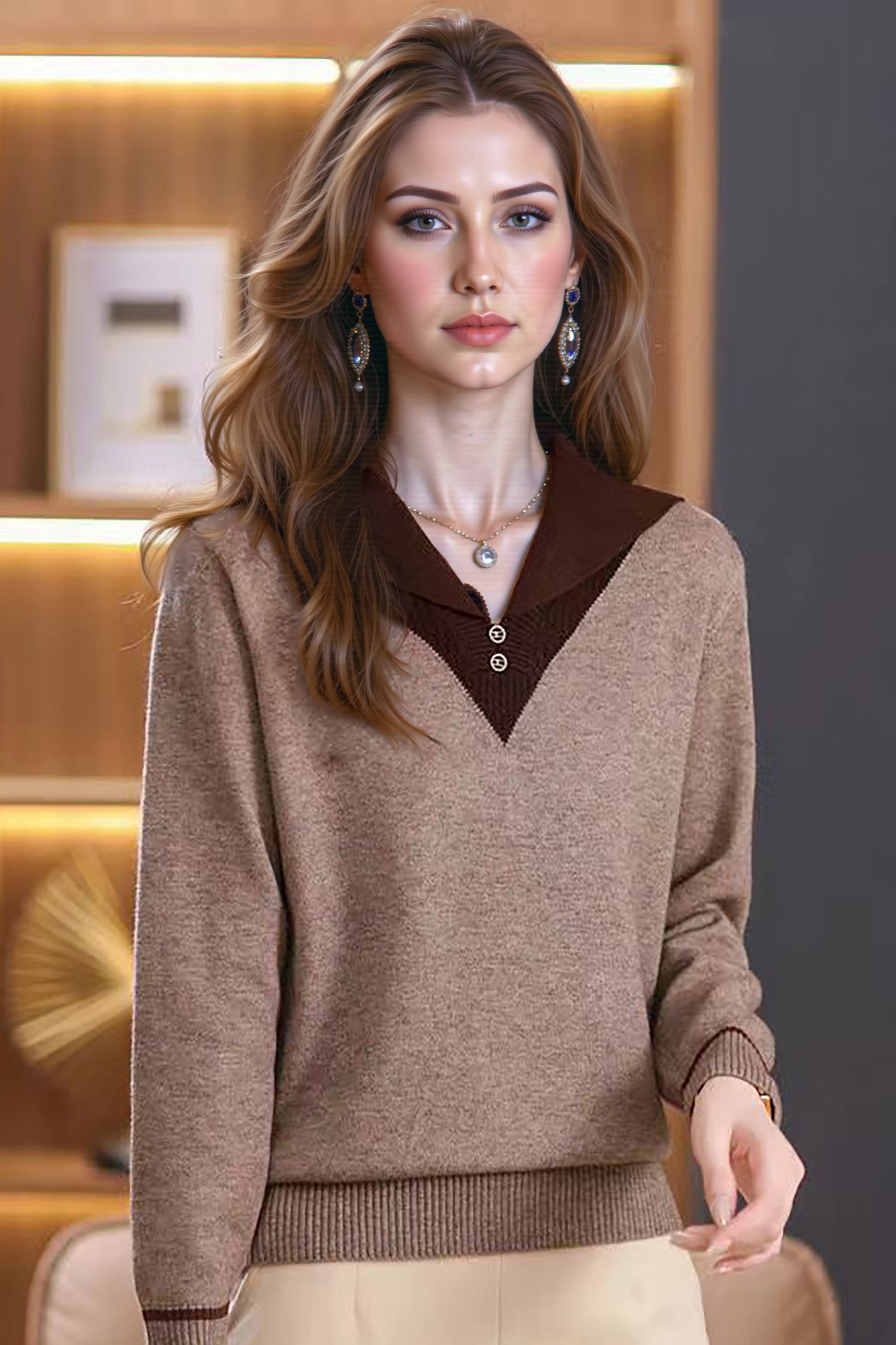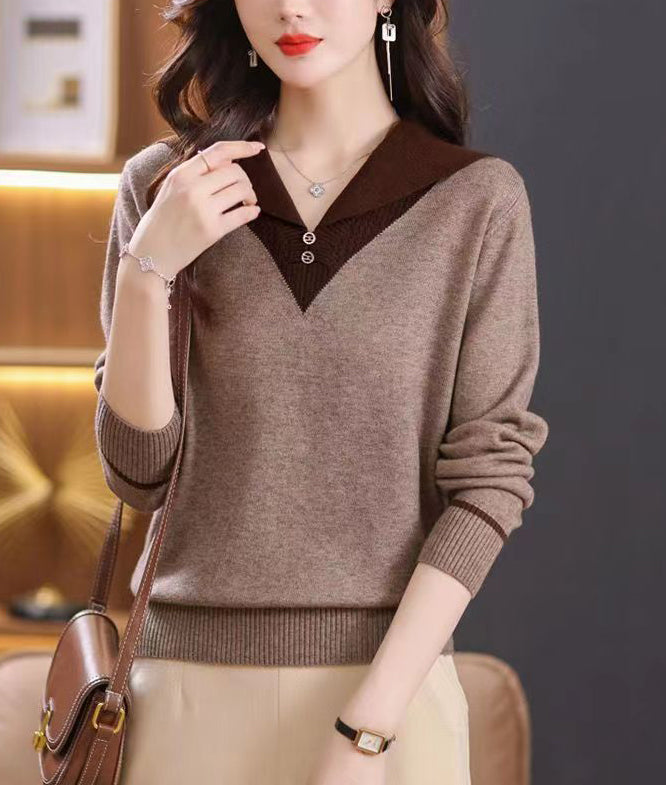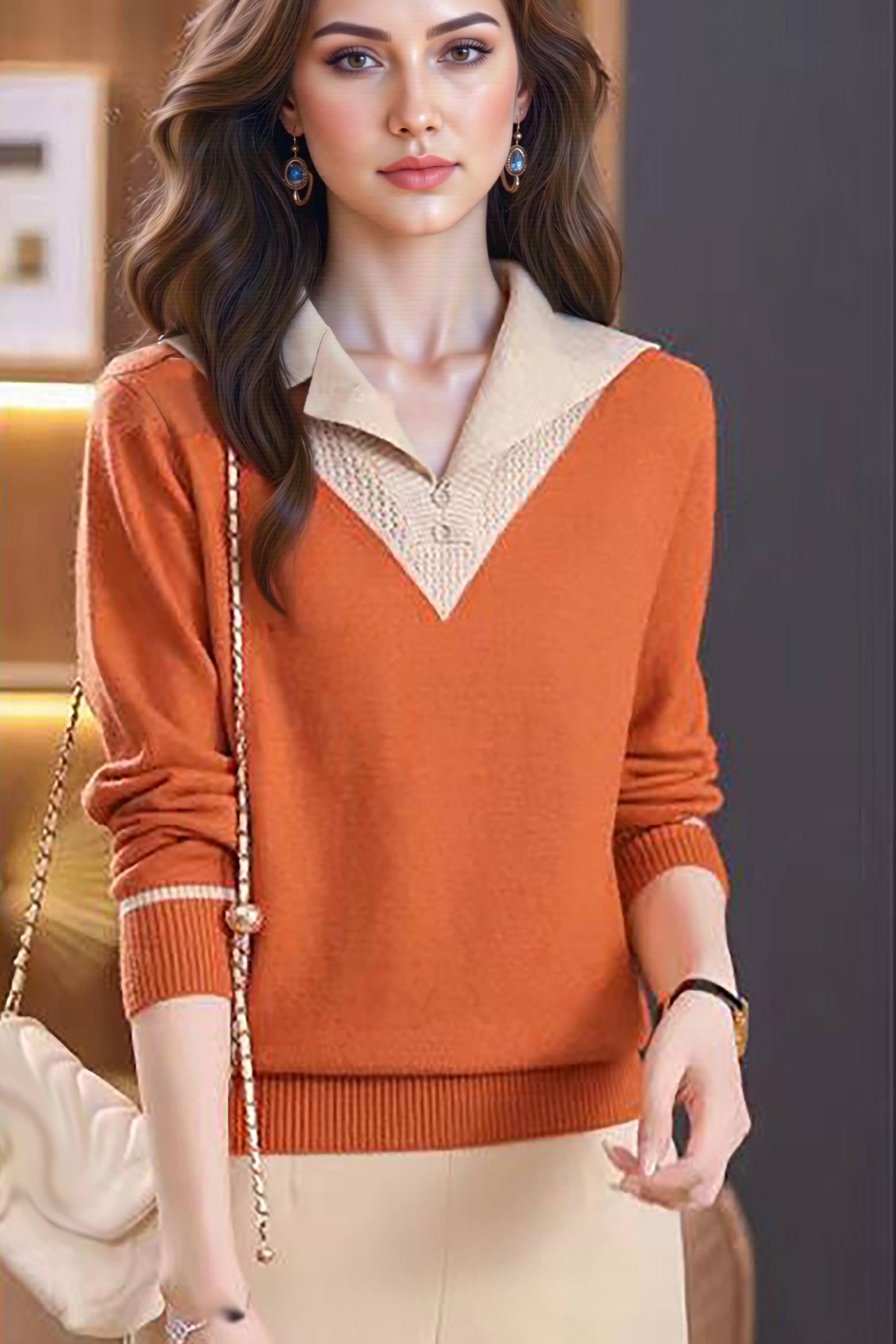 - Features: sailor collar, long sleeves,v-neck, color-blocking knitted sweater, basic tunic tops.It will be great for early fall or winter.