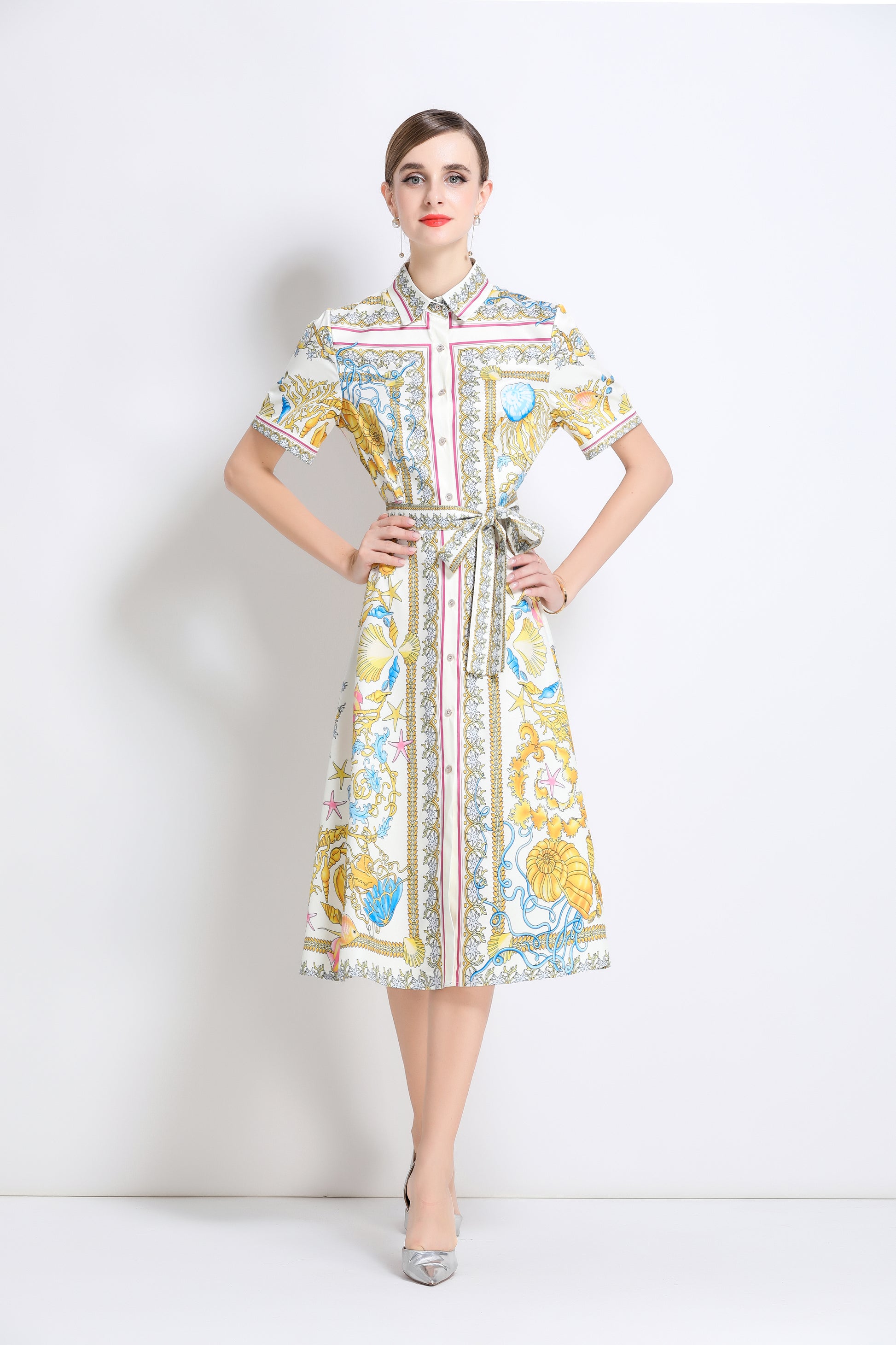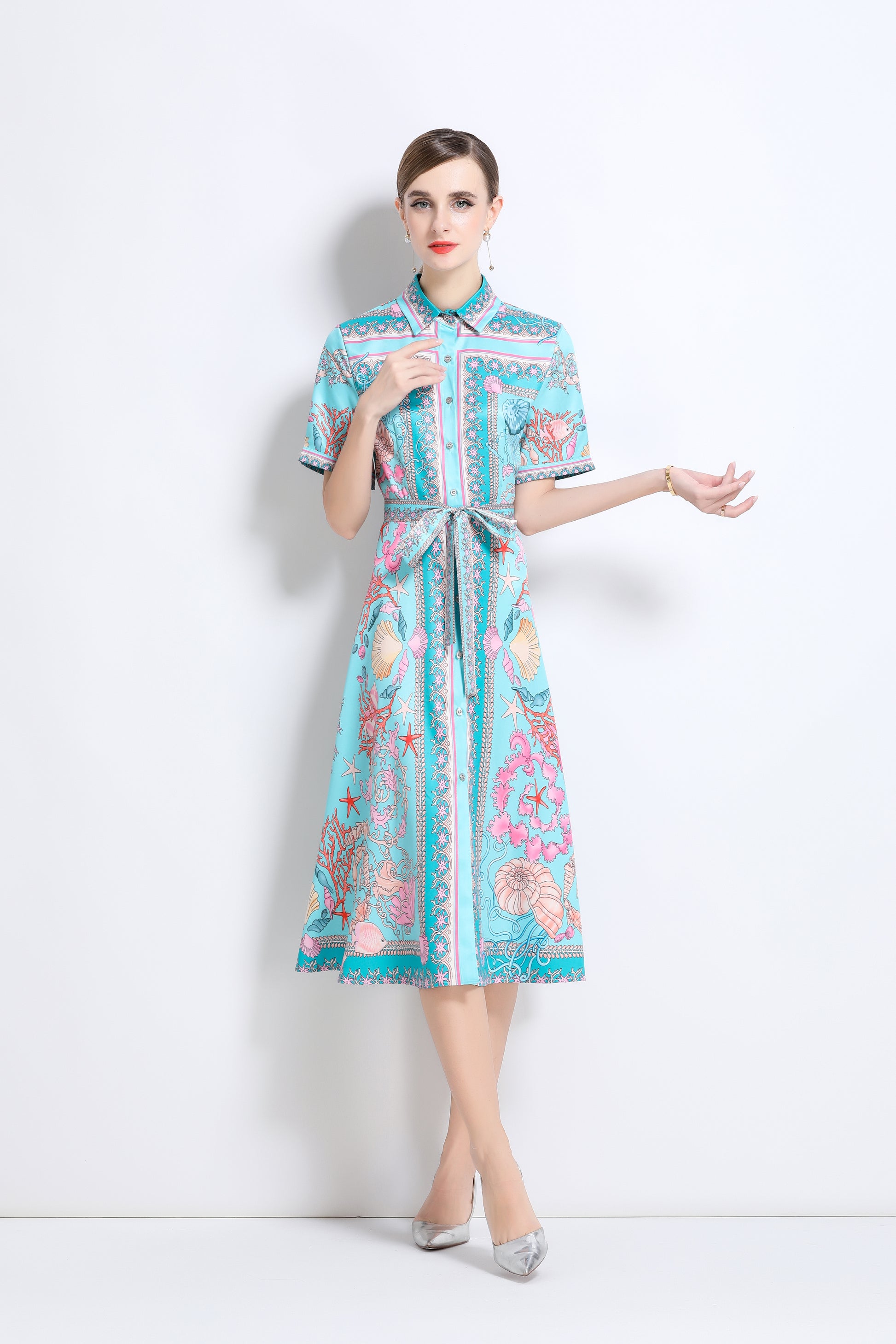 • Feature: Short sleeves, collar, belted waist, floral print, A-line flowy dress. Breathable and comfortable, perfect for spring and summer.
