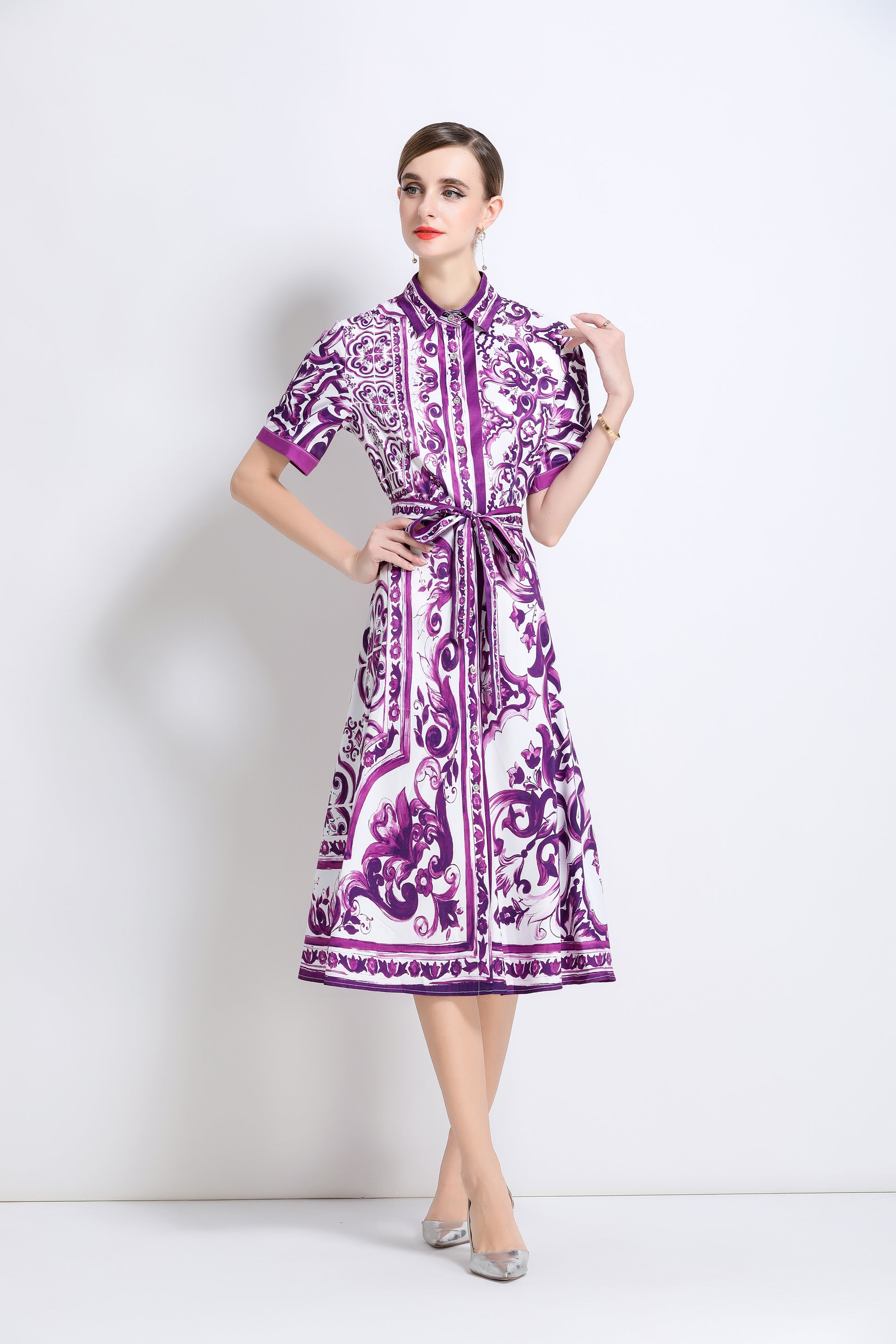 • Design: Classic collar, showing elegance. With belt to fit many body types, allowing you to be comfortable all day. Floral colors are vivid.