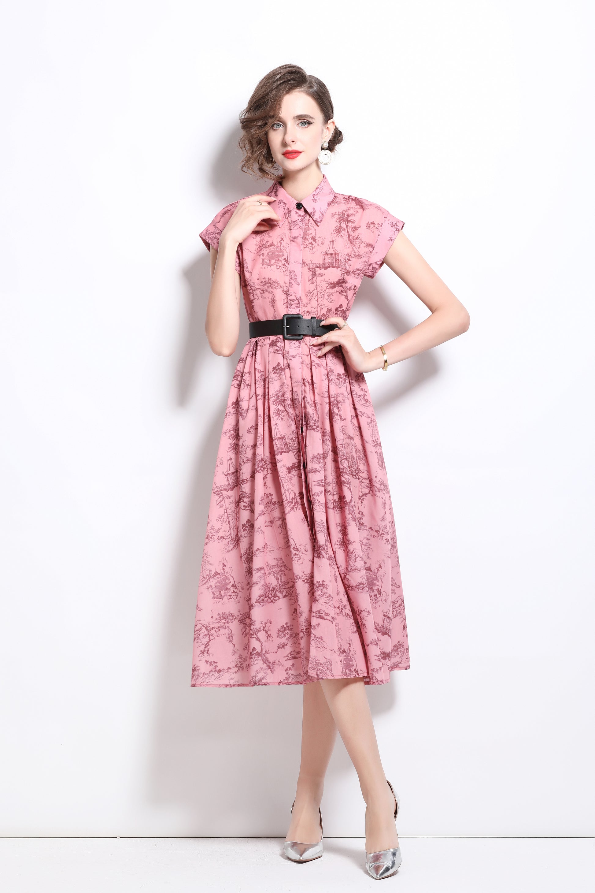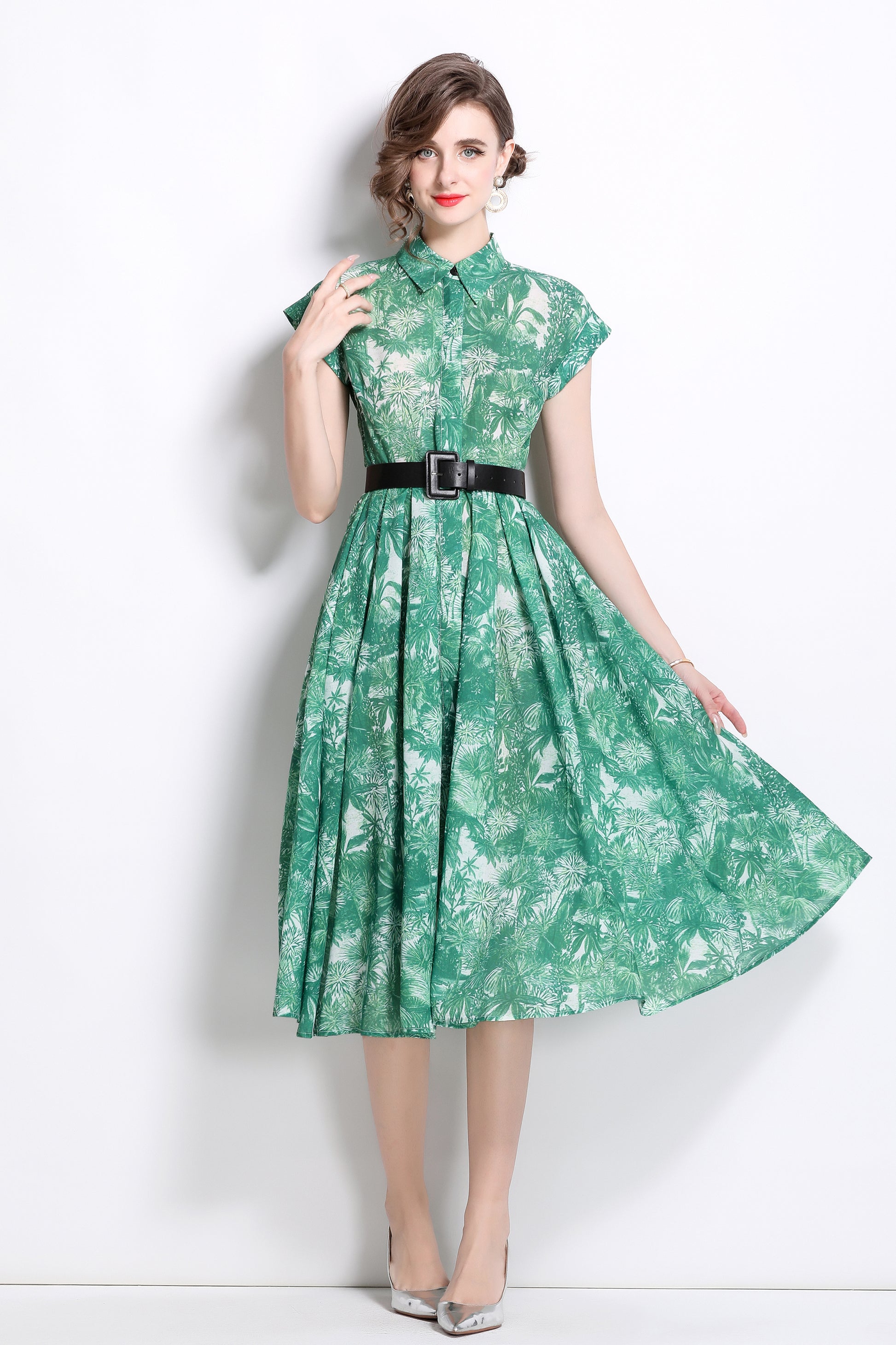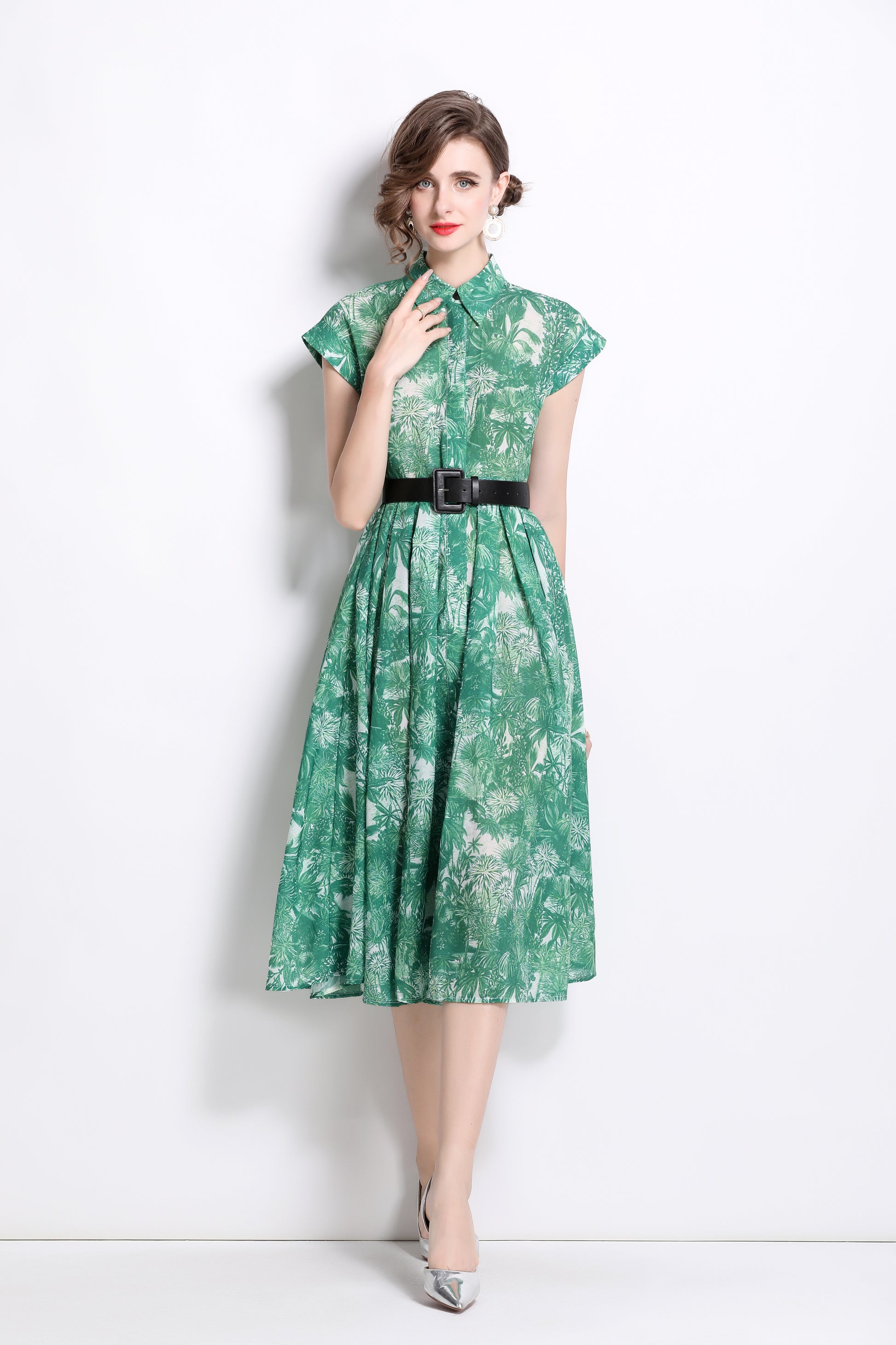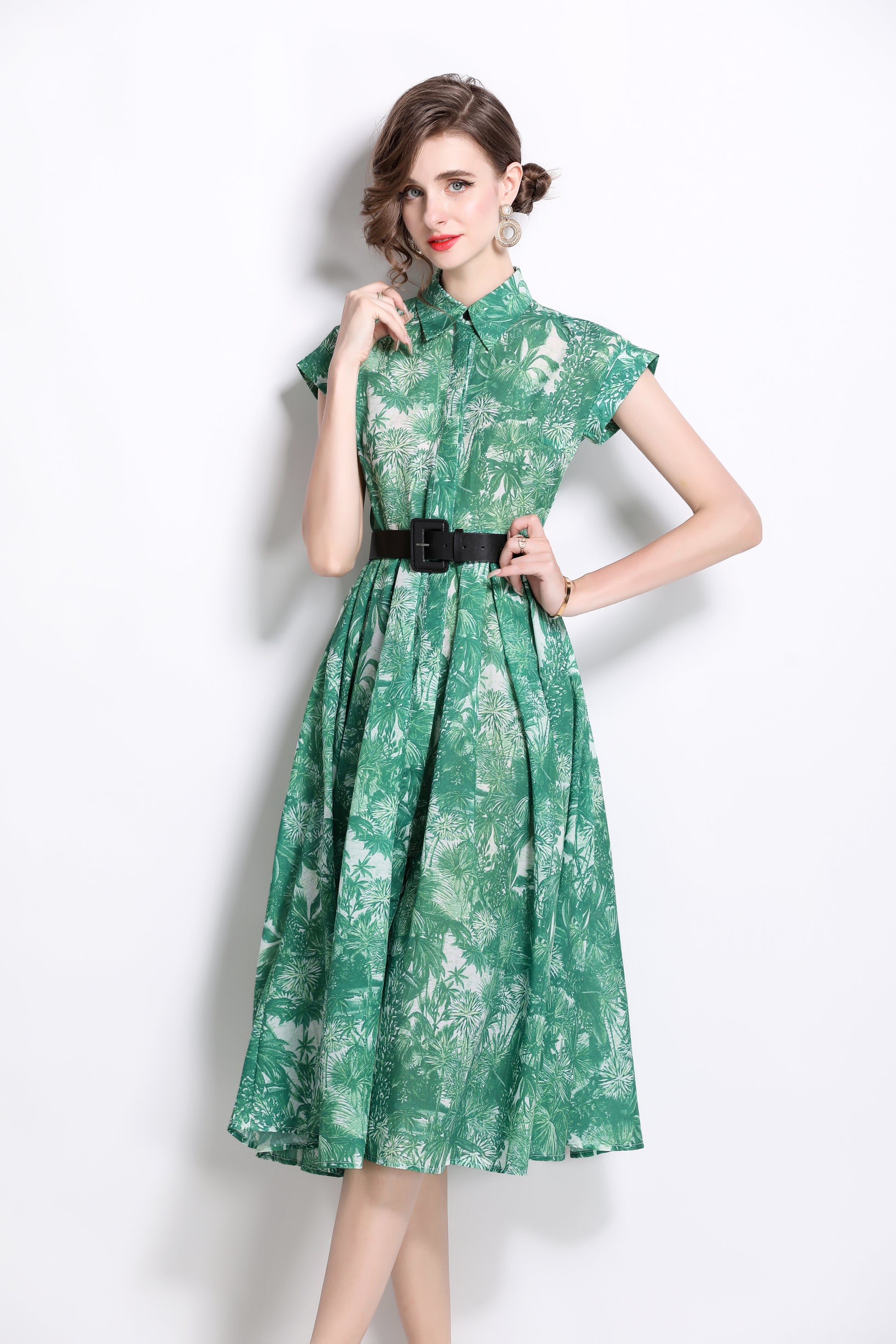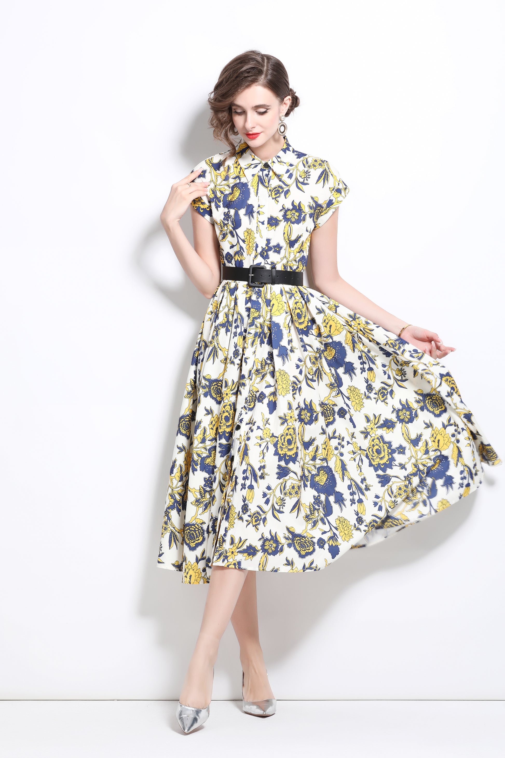 - Features: Short sleeves, classic collar shirt, exquisite prints, waist belt, buttons,a midi flowy dress for women and girls.