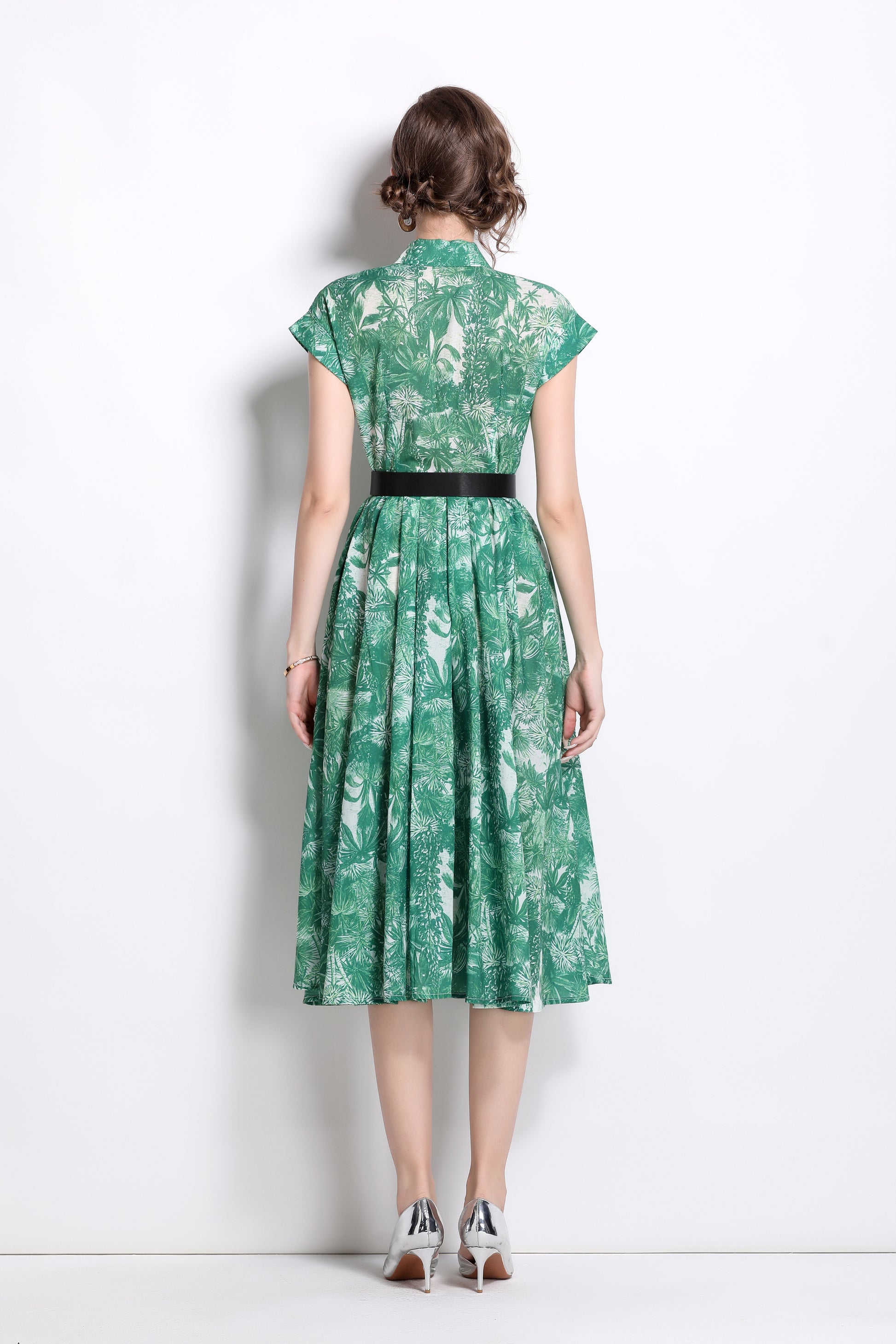 Women's Short Sleeves Collar Printed Buttons Midi Dress