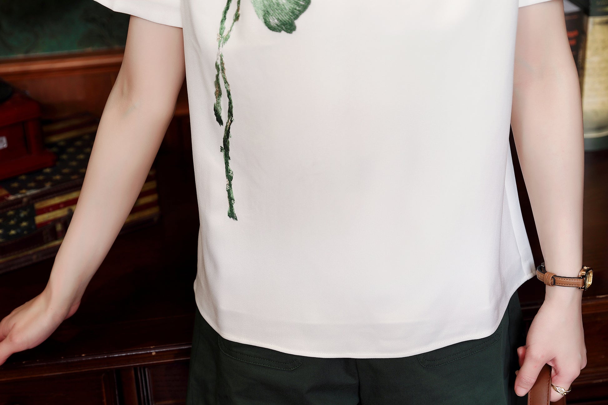 - Feature: Vintage Silk satin fabric, hight Neck, Casual Blouse, Regular Fit,short Sleeves,back zip. It is a chic fashion summer Chinese style shirt top.