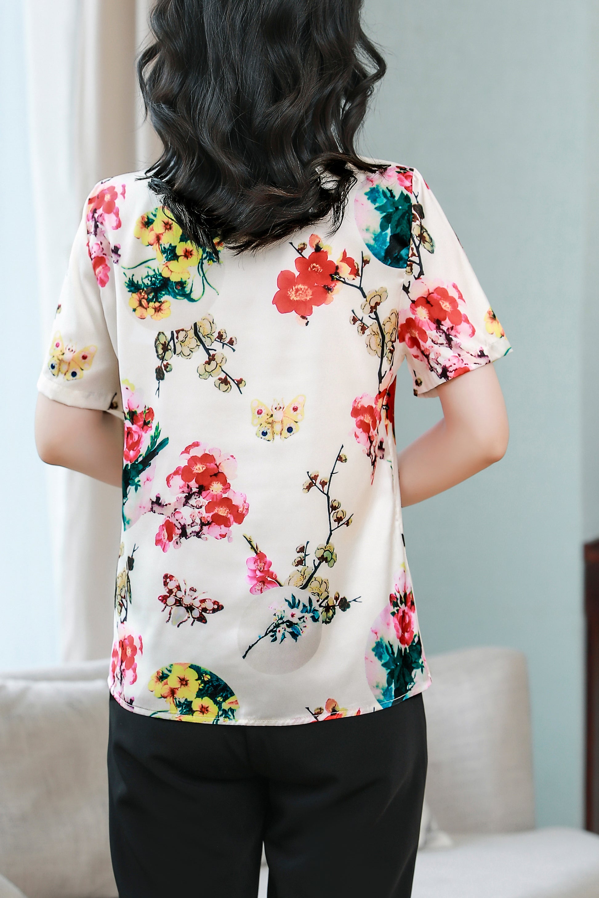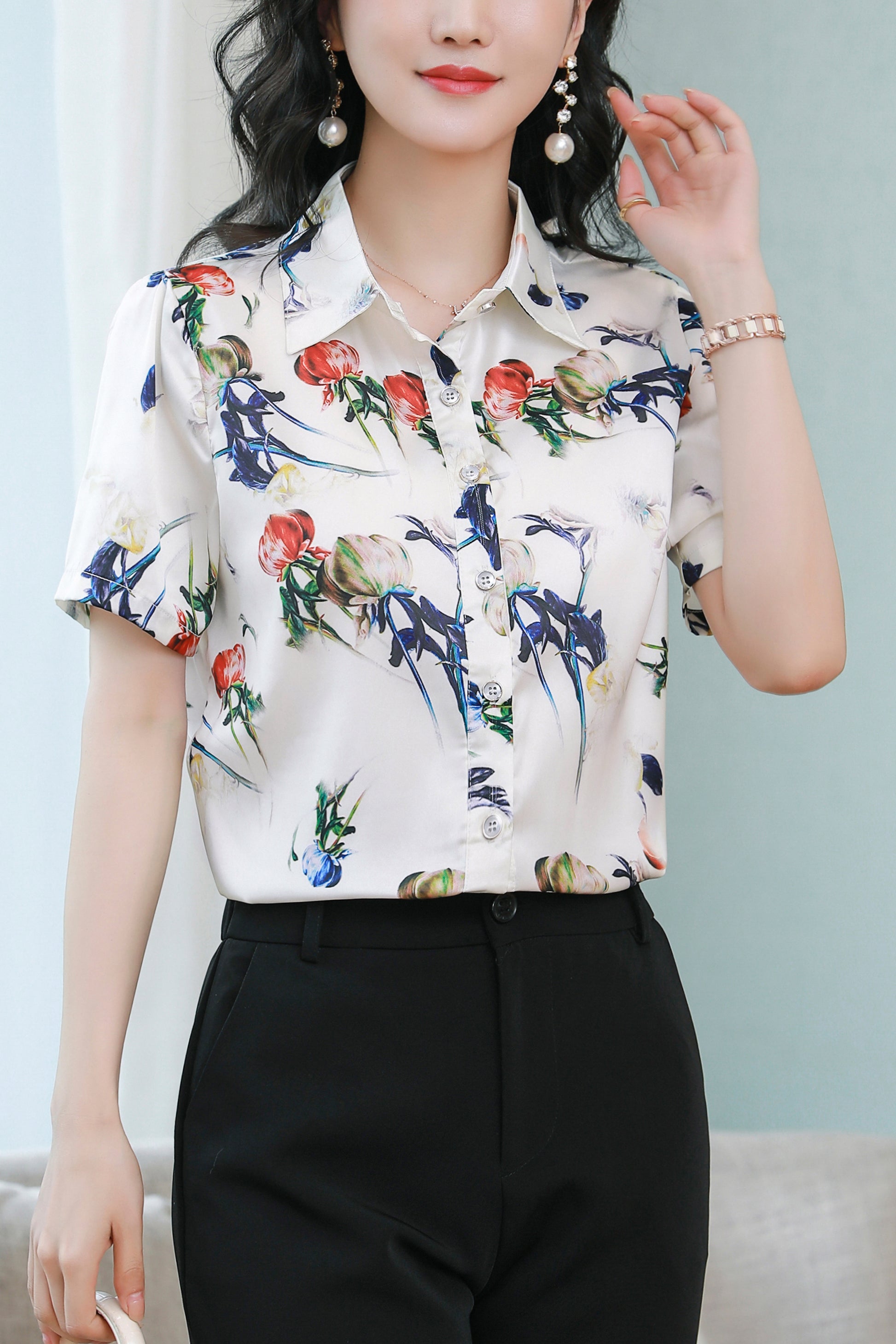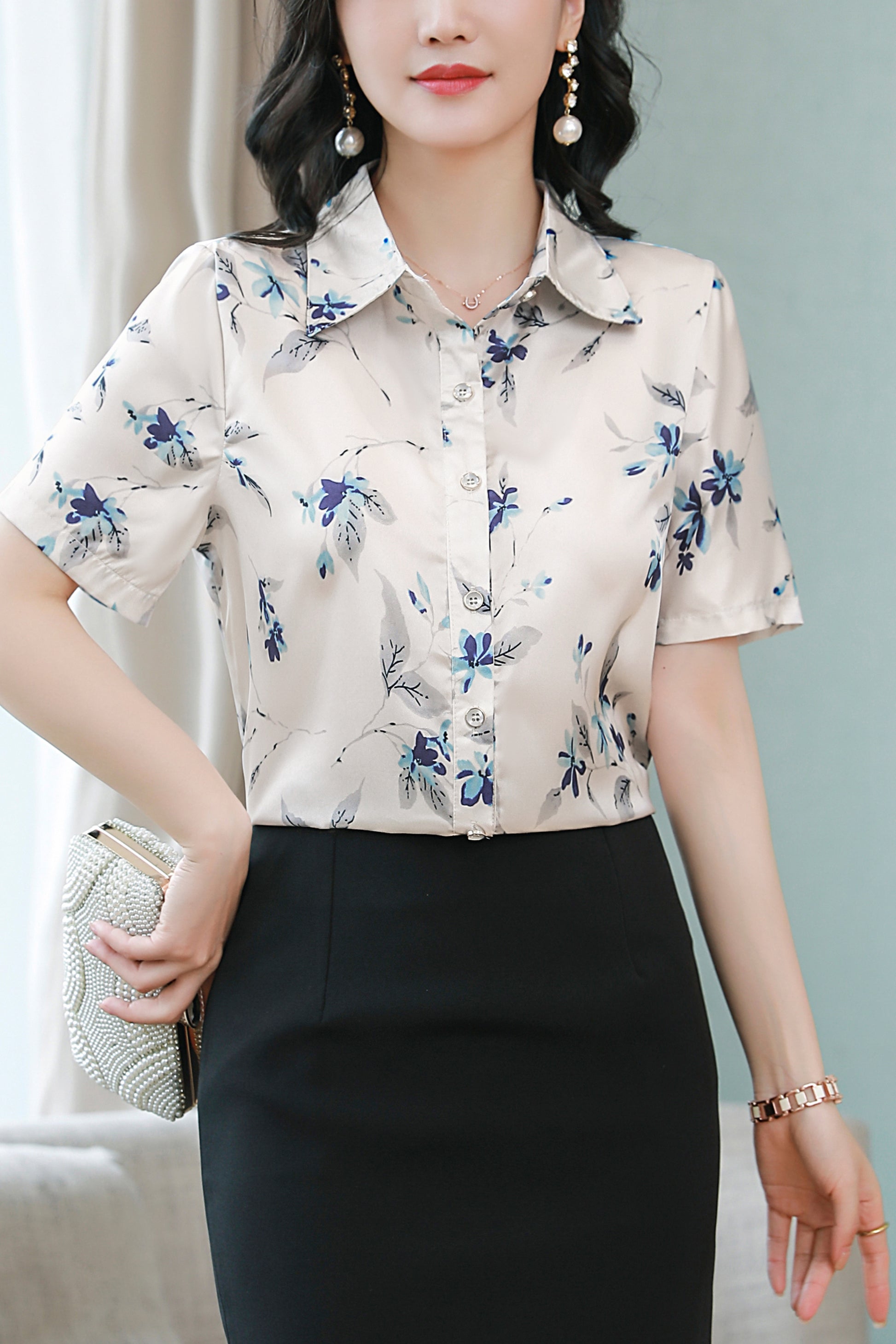 Women's Stain Floral Print Blouse Short Sleeve Tops
