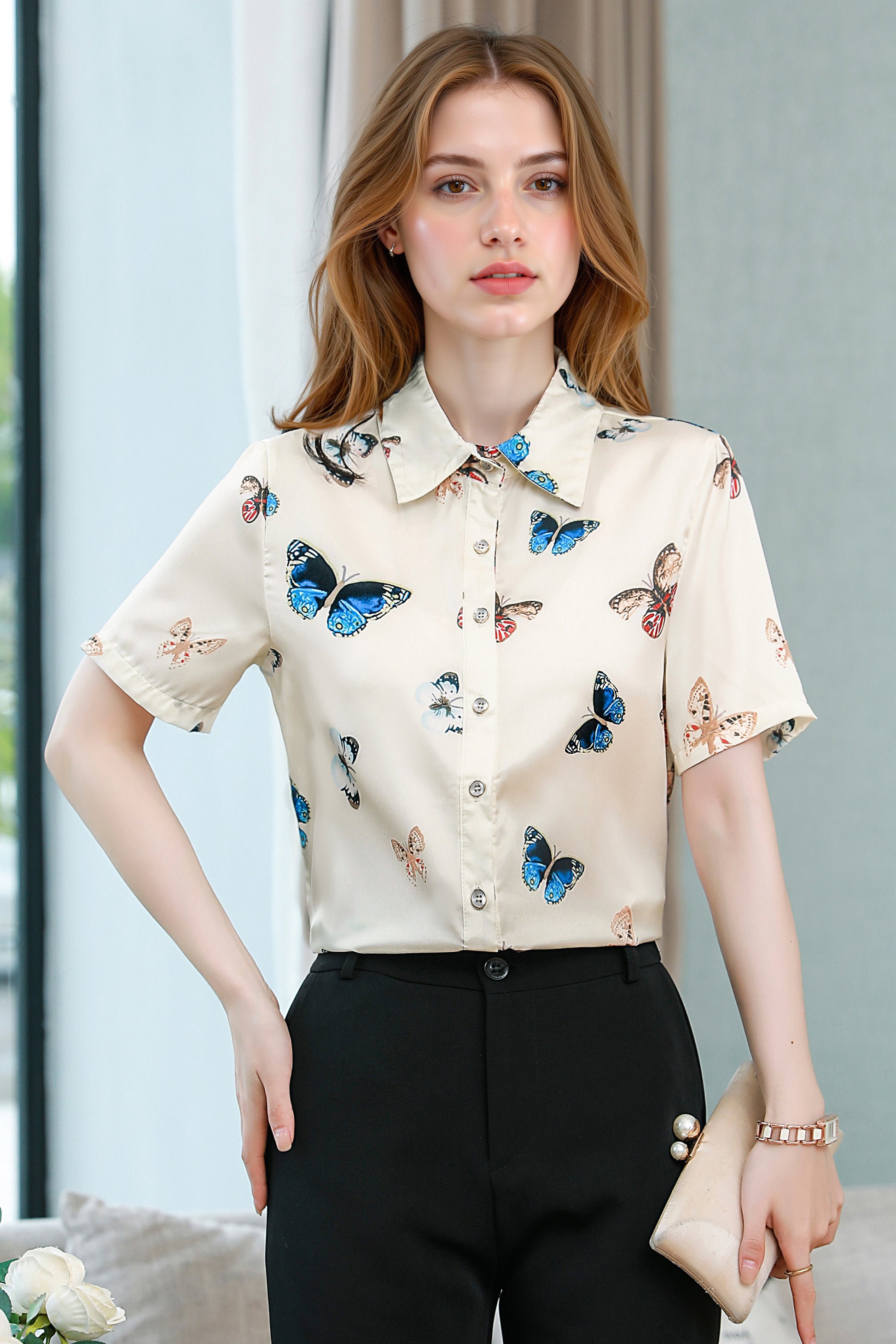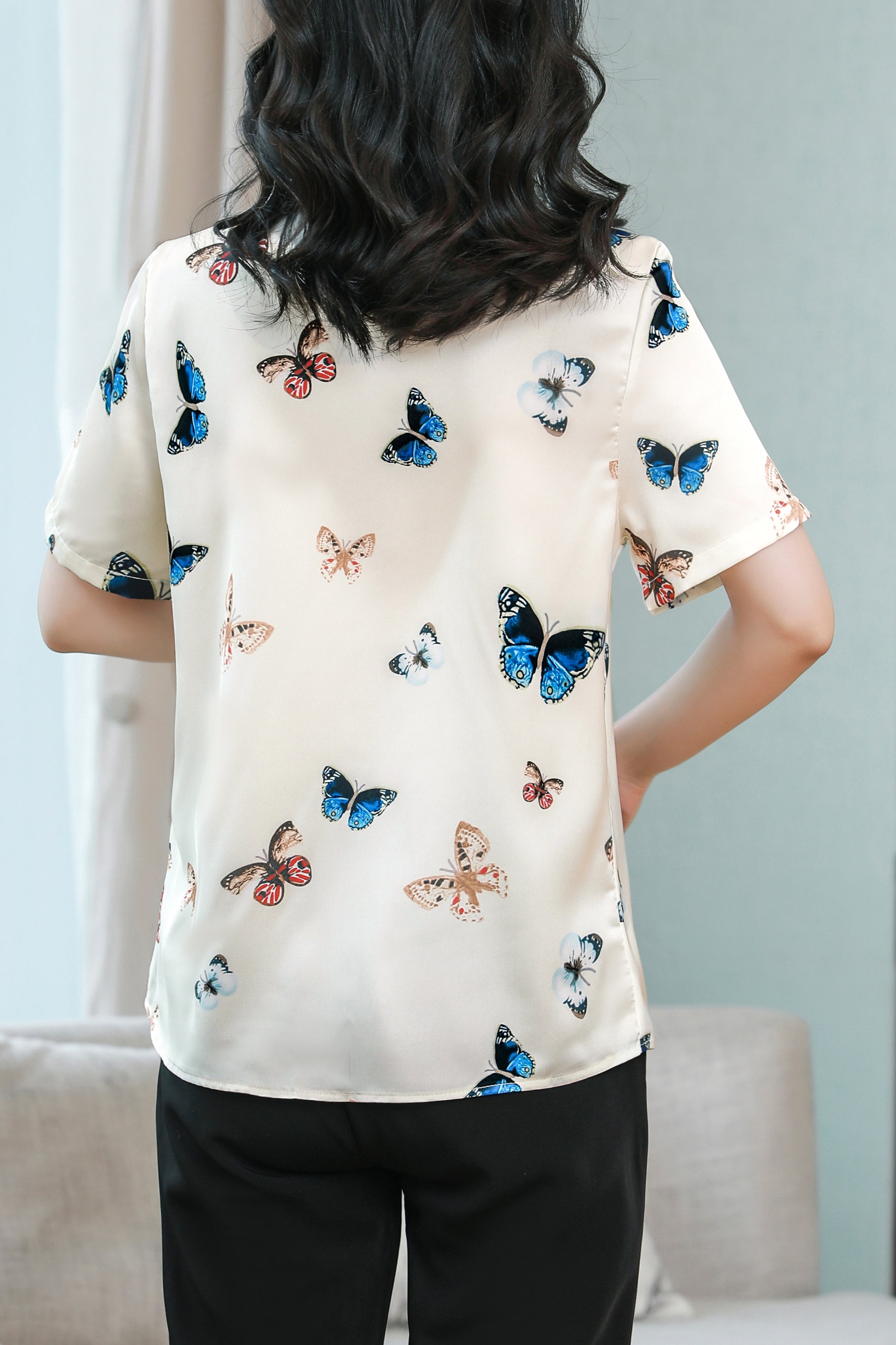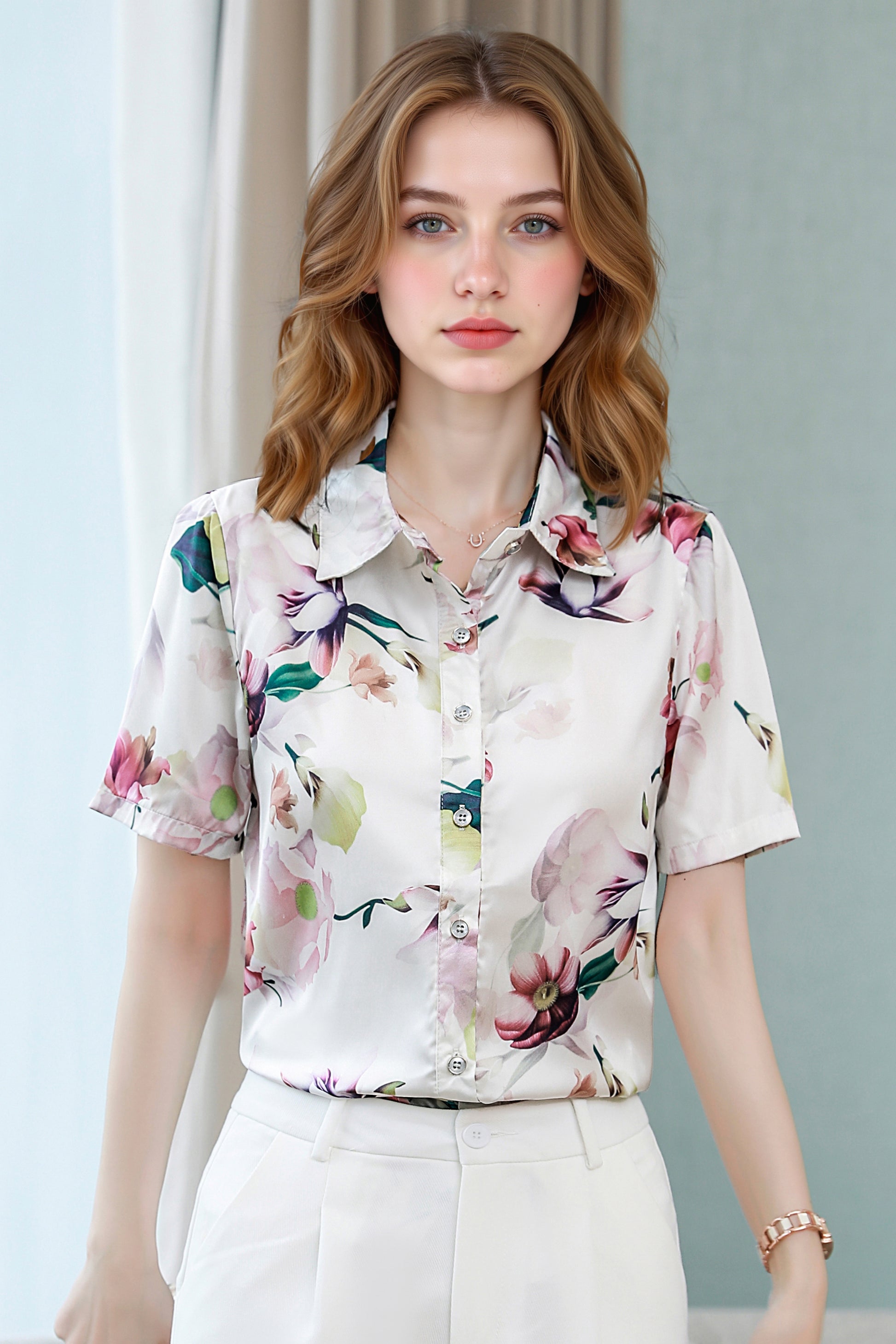 Women's Stain Floral Print Blouse Short Sleeve Tops