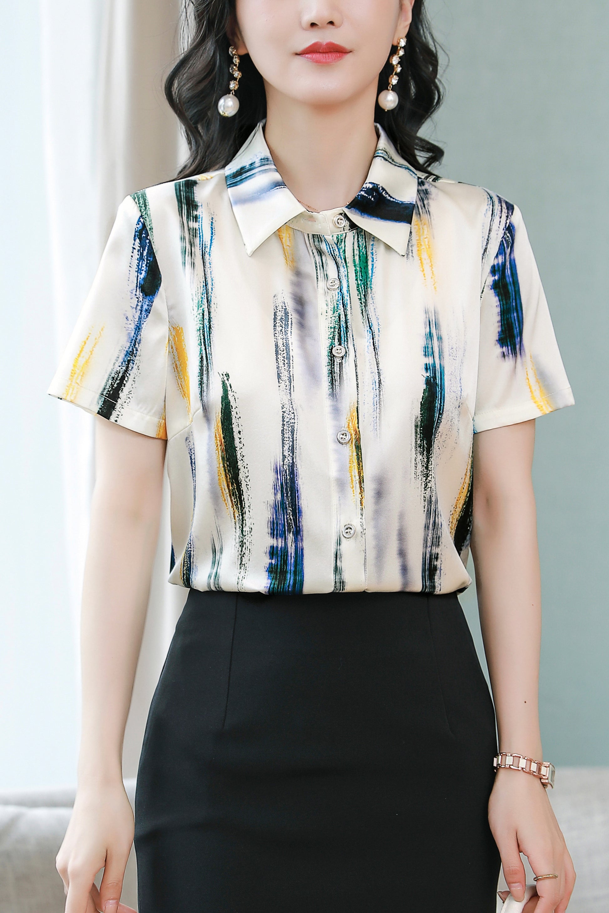 Women's Stain Floral Print Blouse Short Sleeve Tops