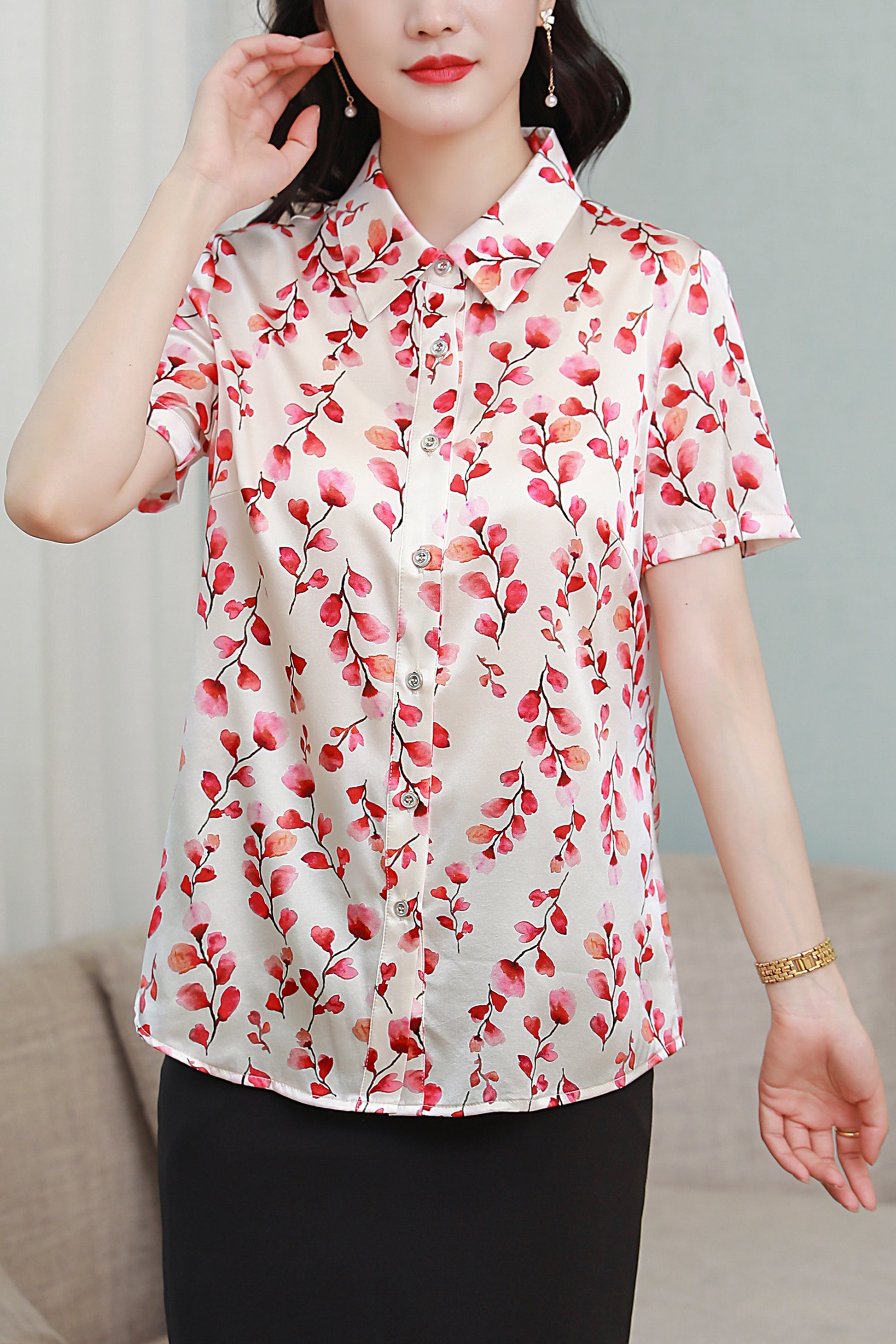 Women's Stain Floral Print Blouse Short Sleeve Tops