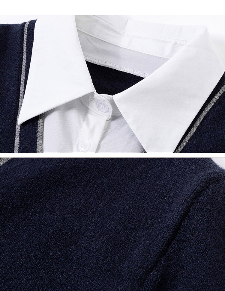 Women's Striped Sweater 2 in 1 Lapel Knit Pullover