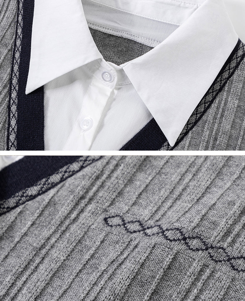 Women's Sweater 2 in 1 Lapel Ribbed Knit Pullover Top