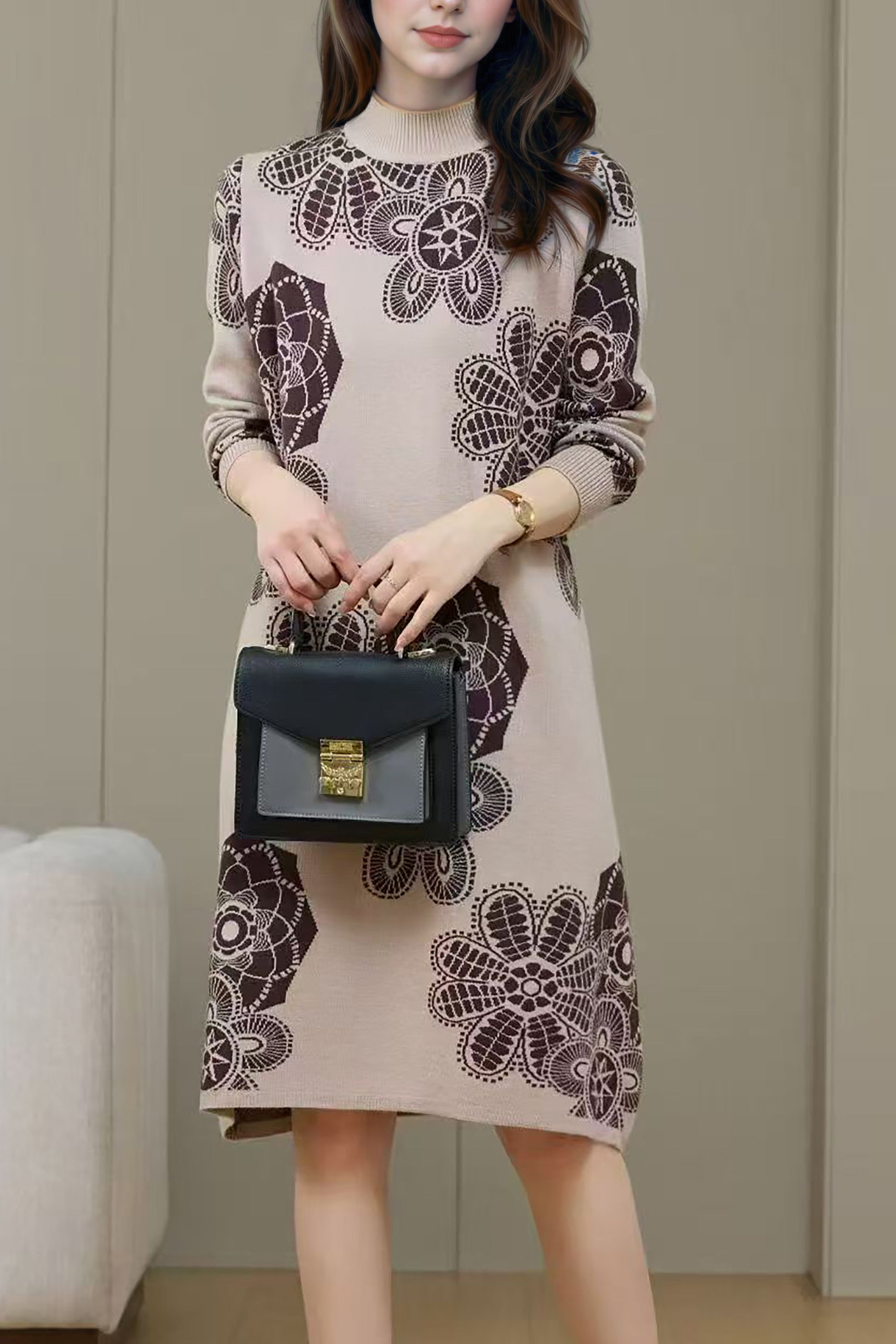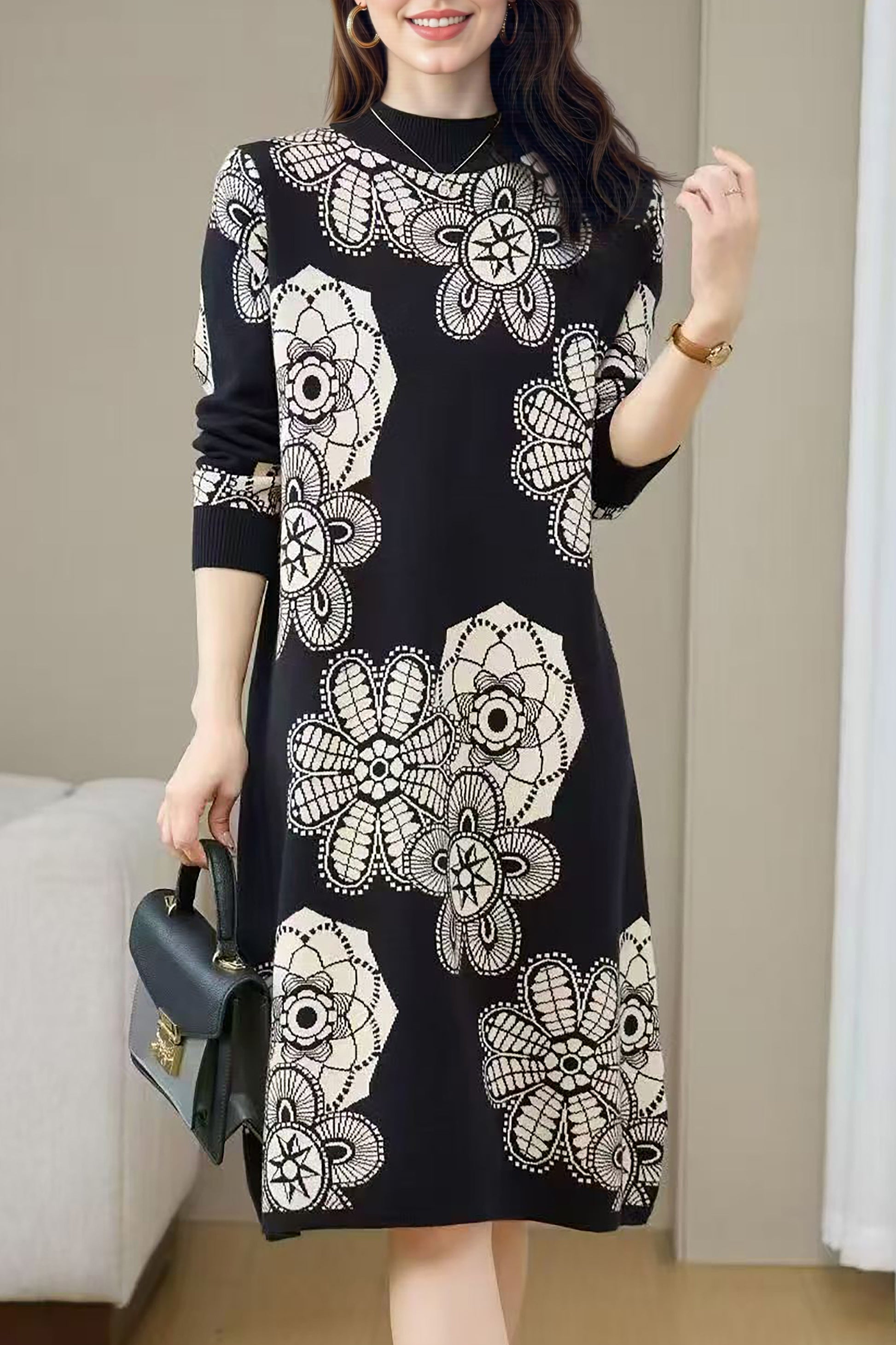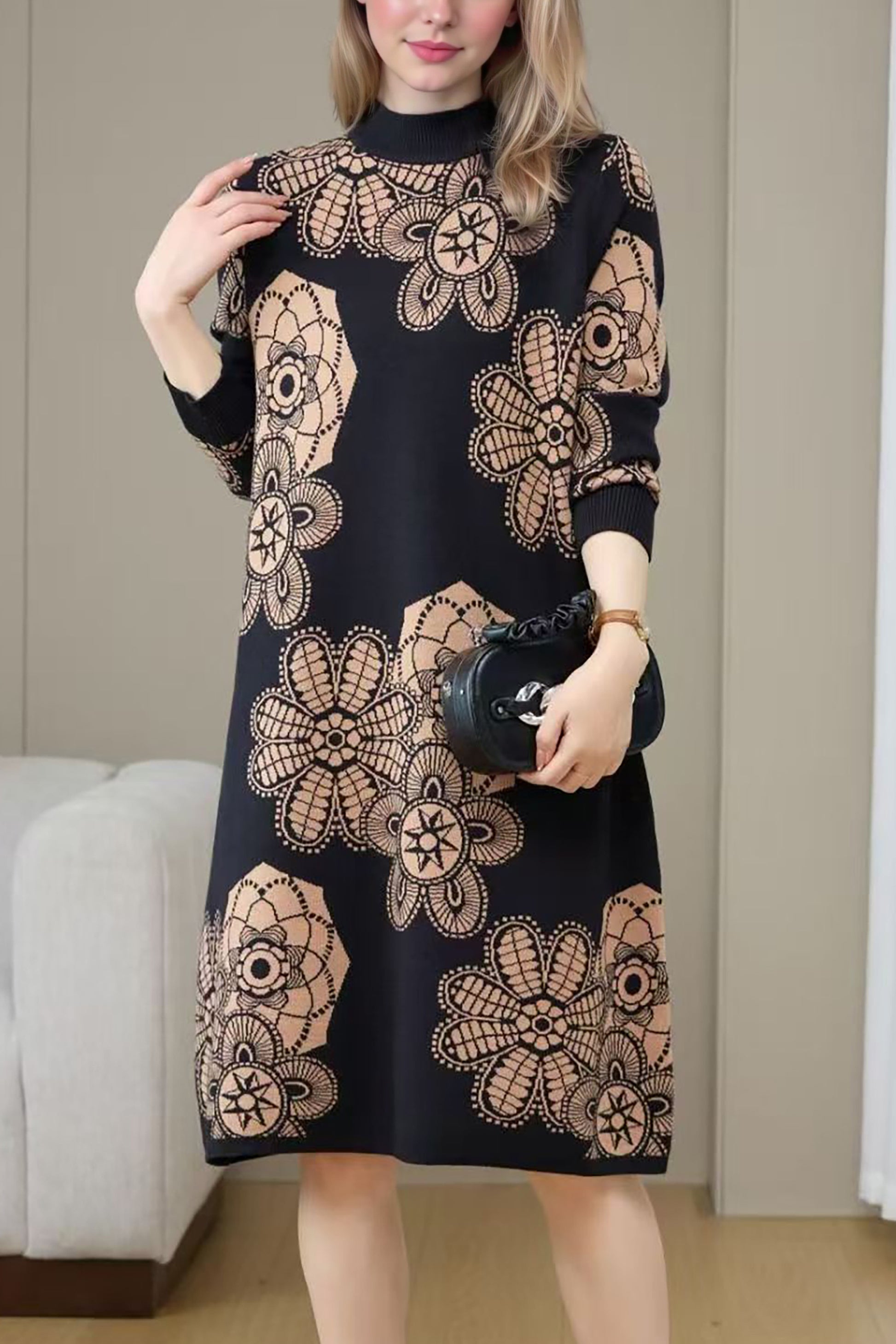- Features:Turtleneck,print,long sleeves, chunky knit sweater,Soft, breathable, comfortable, stretchy, elegant.The knitted fabric is flexible and suitable for all body types, this dress will give you a better wearing feeling.