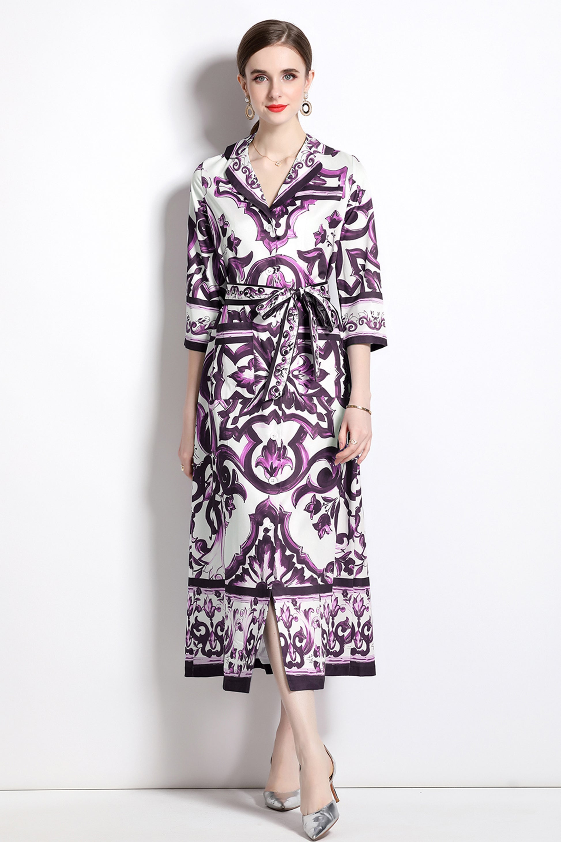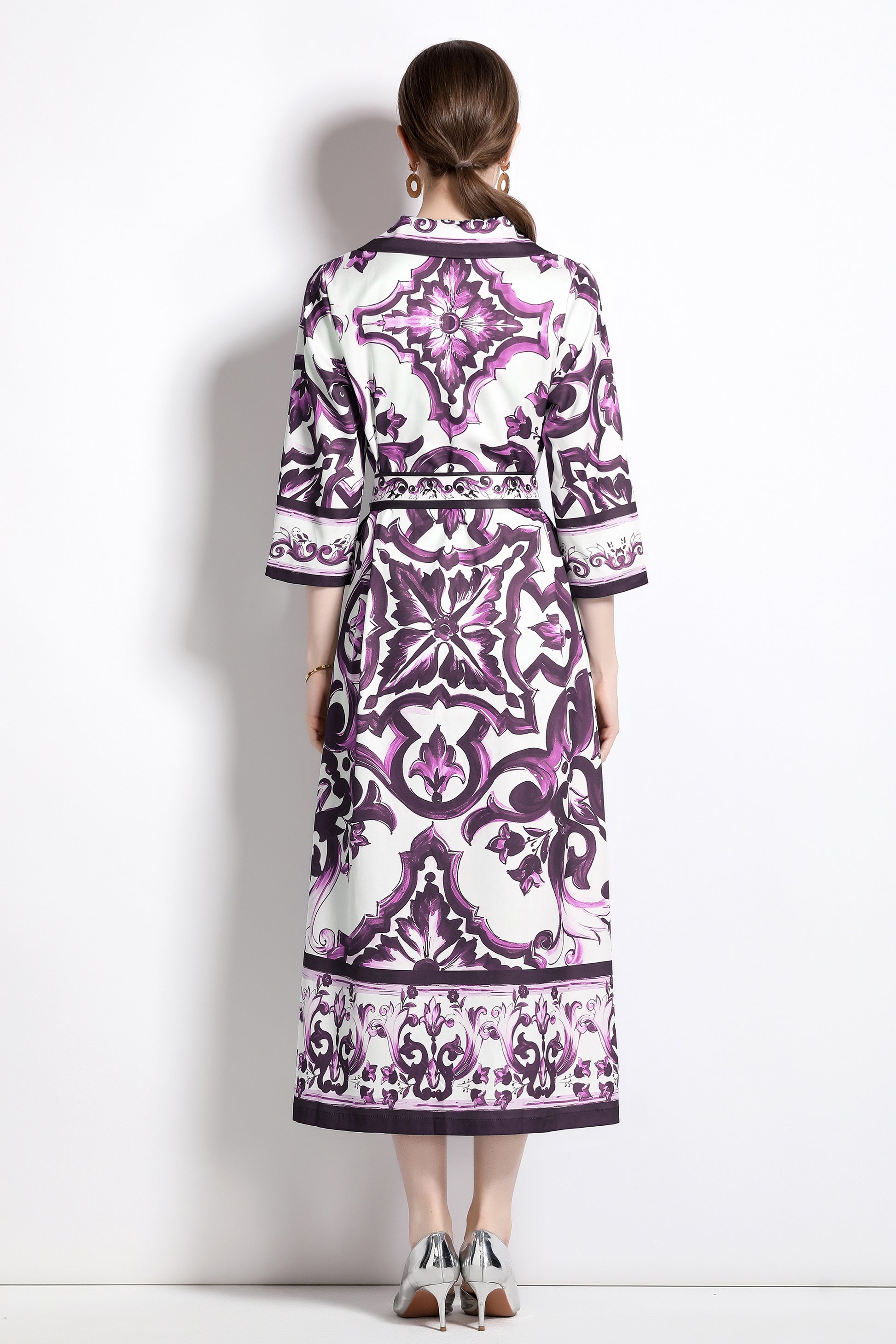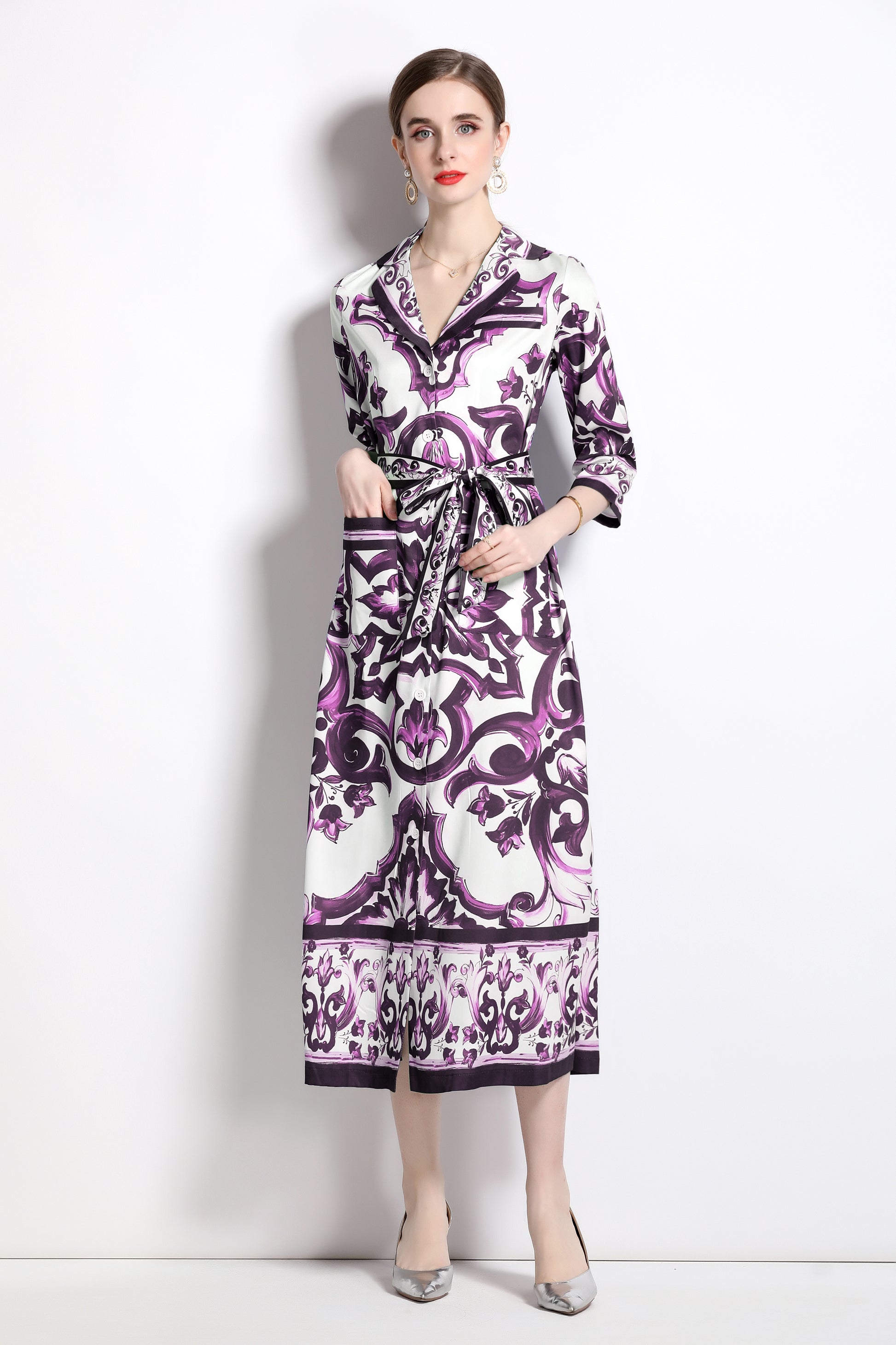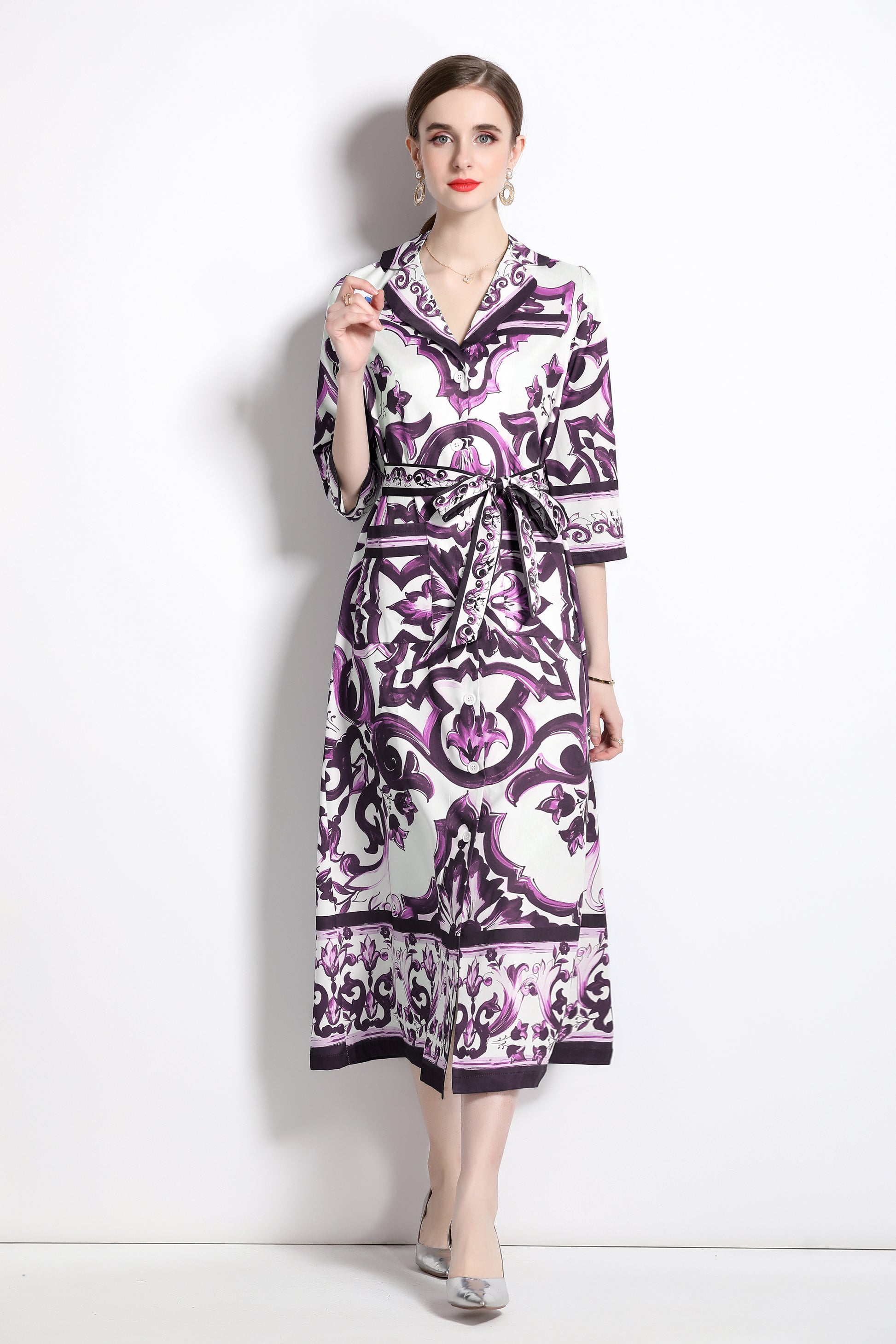 • 【Feature】Polyester,soft and comfortable,button up,floral print,flowy A line dress,V neck,3/4 sleeve,split flared hem,midi dress