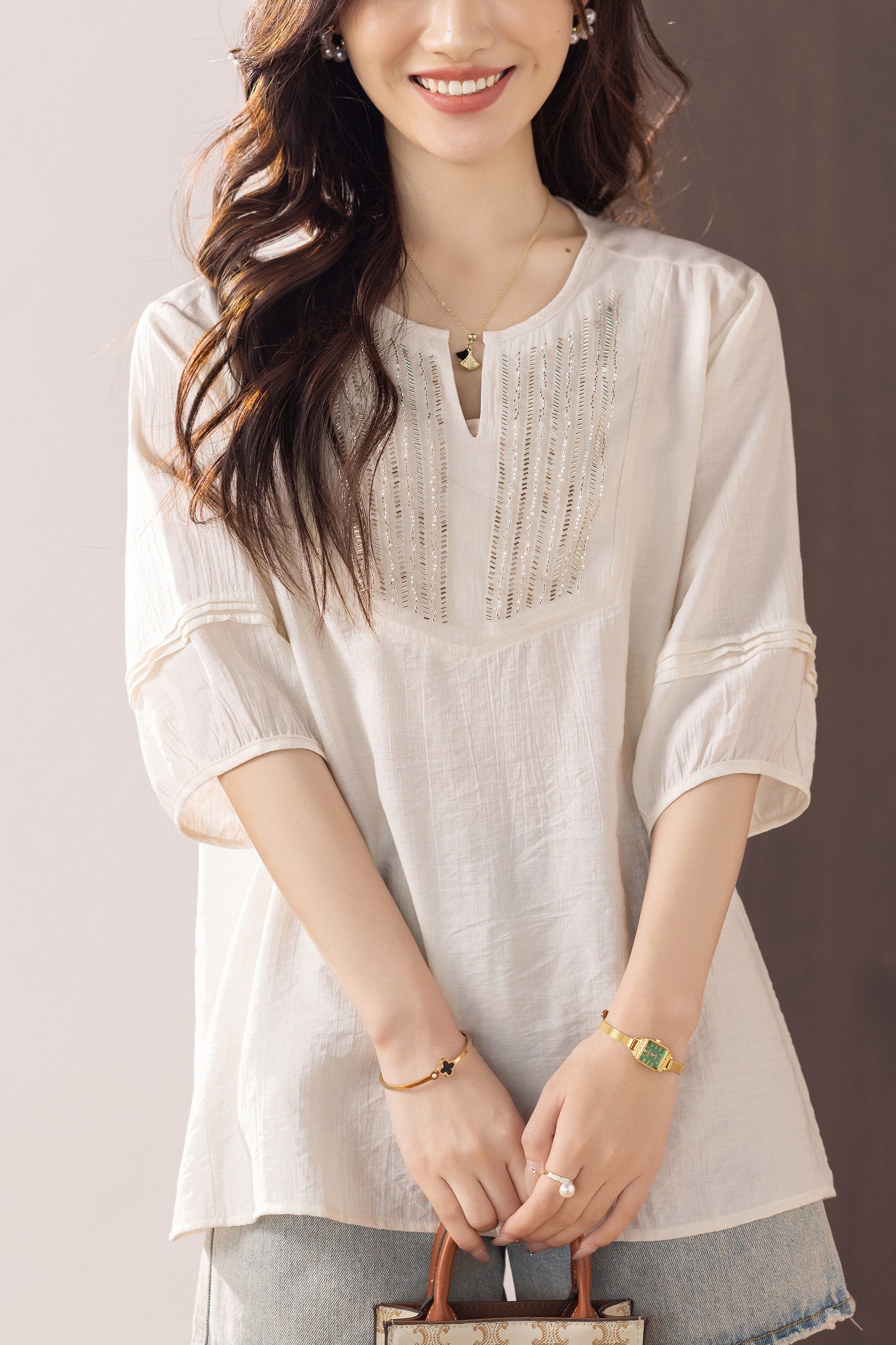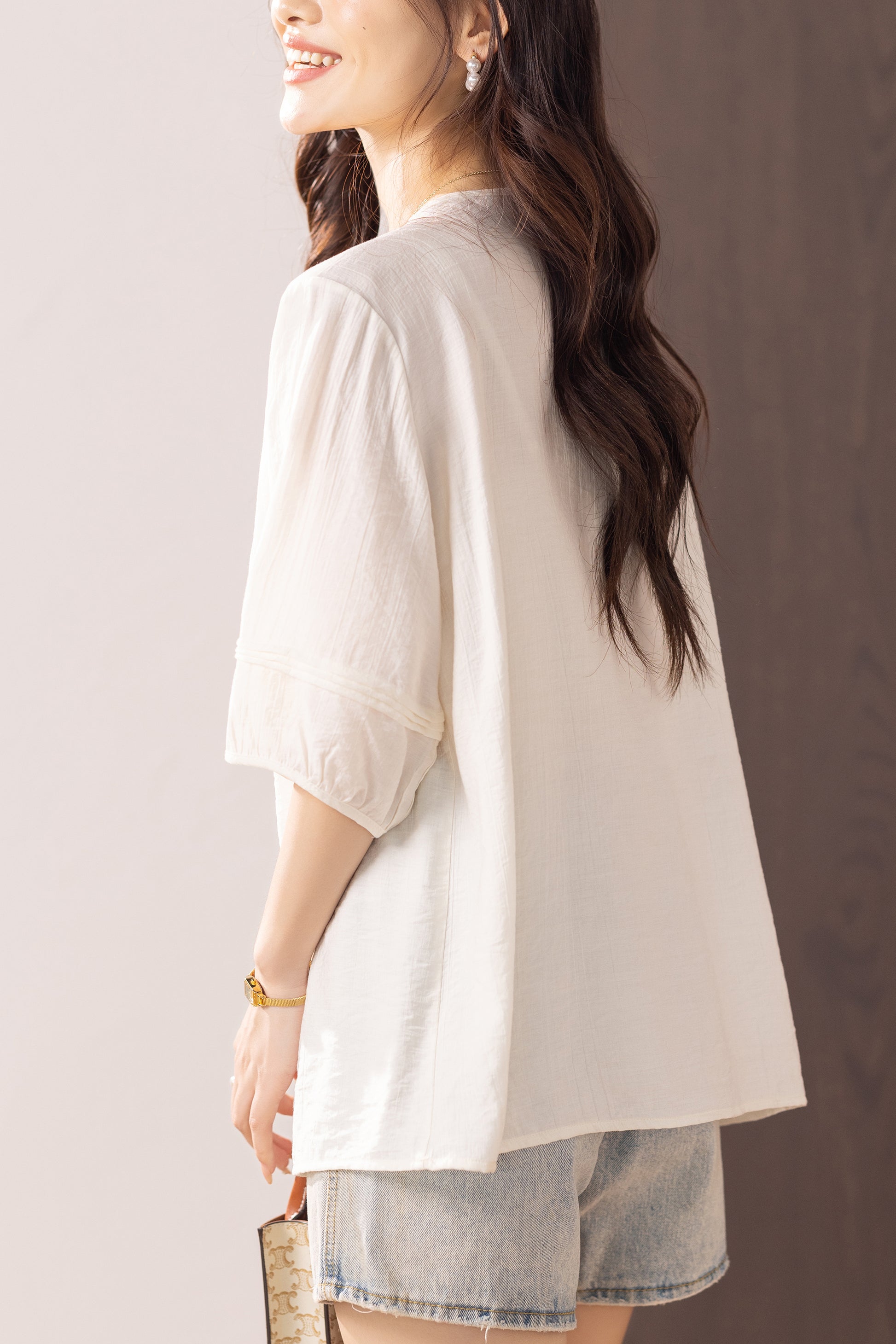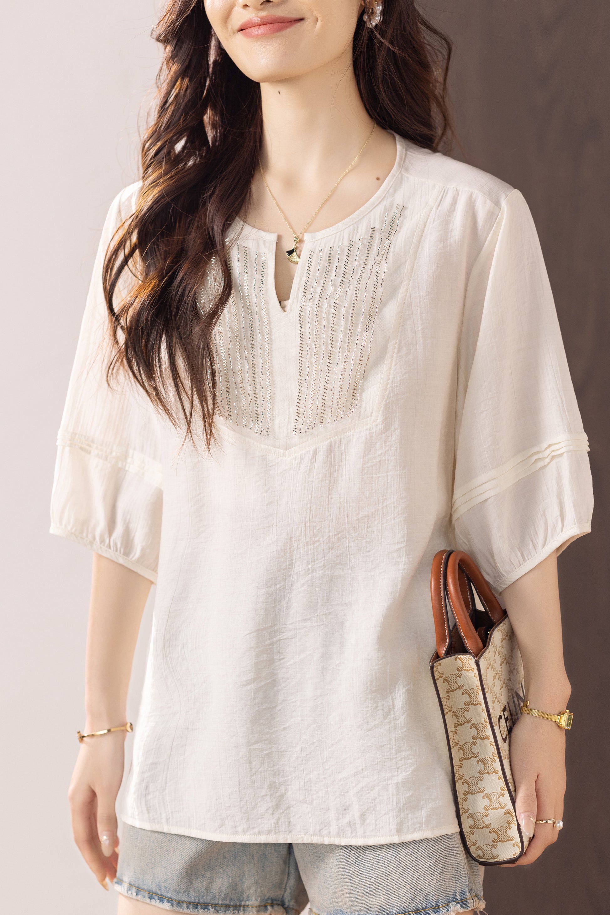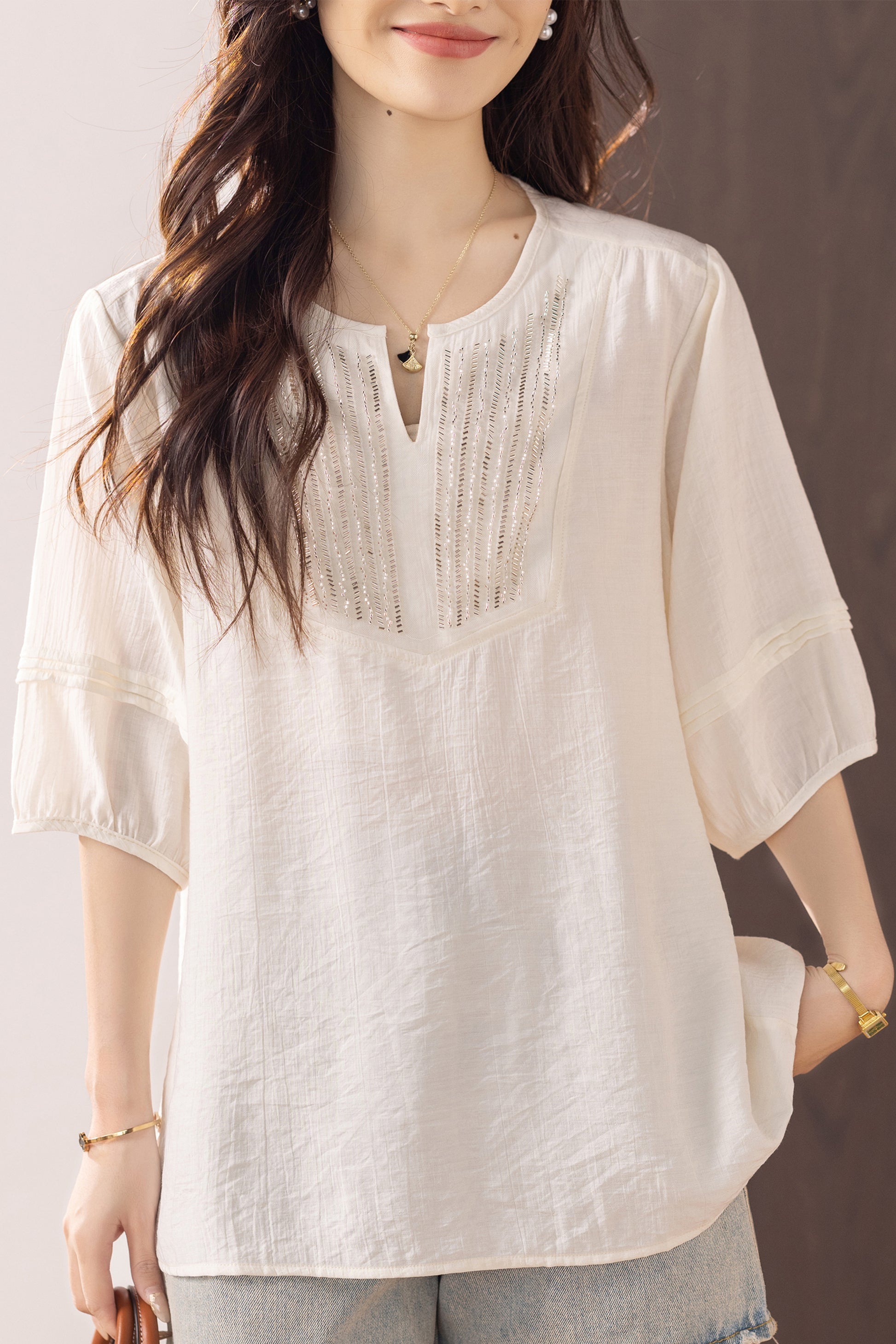 • Features: Sexy V neck. Fabric has non stretch,V neckline,lace trim,Short sleeves, Button Fly,hollow out, floral embroidered, Regular Fit, solid color.