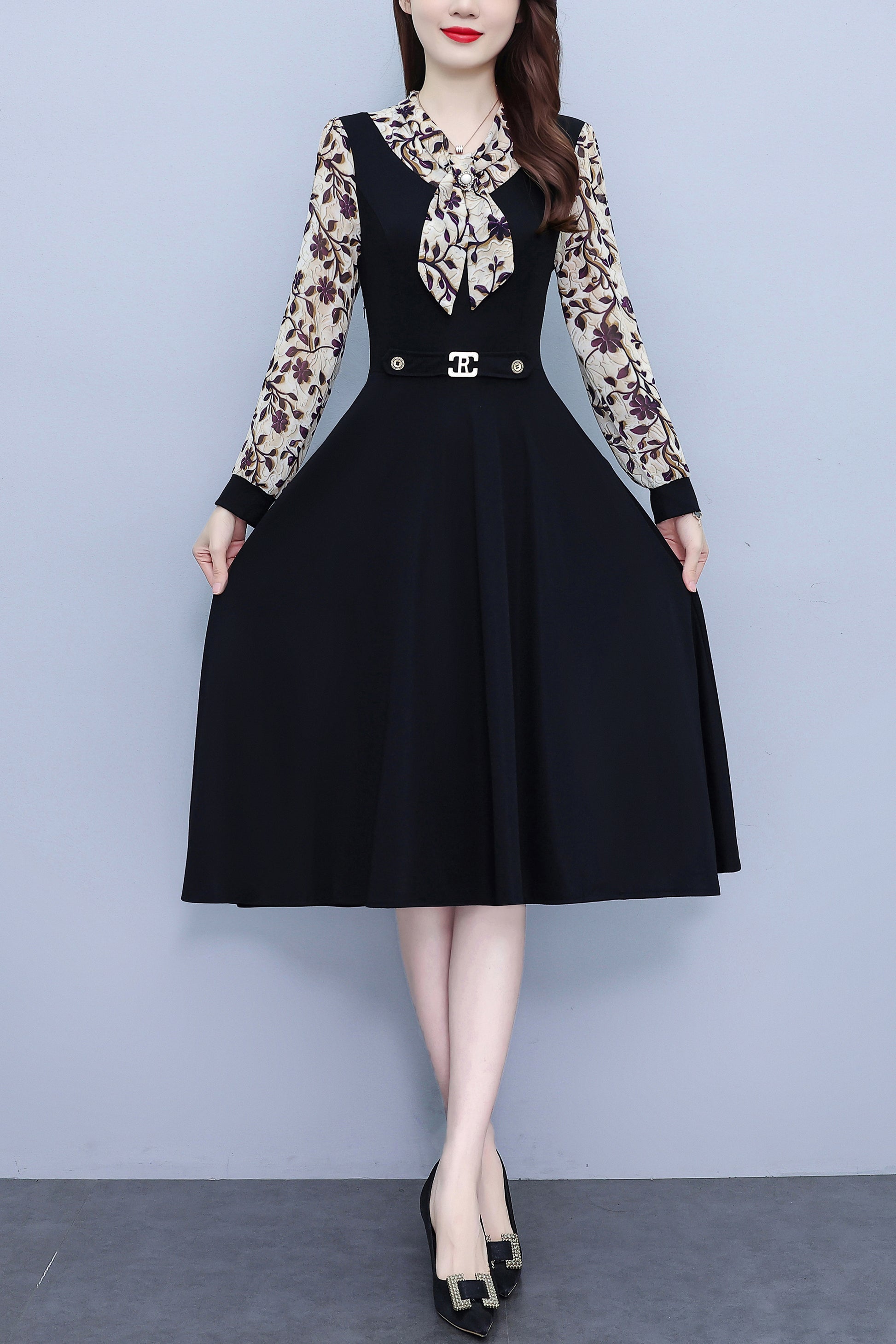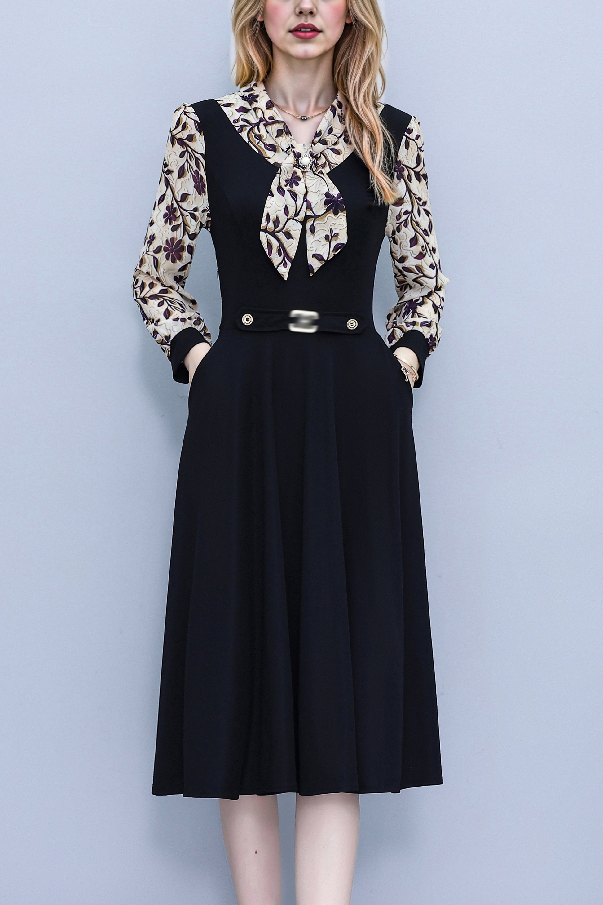 • Elegant dress:2025 fashion dress/midi dress/patchwork dress/floral print dress/mom elegant dress/spring long sleeve dress/black dress/wedding dress/floral dress for women.