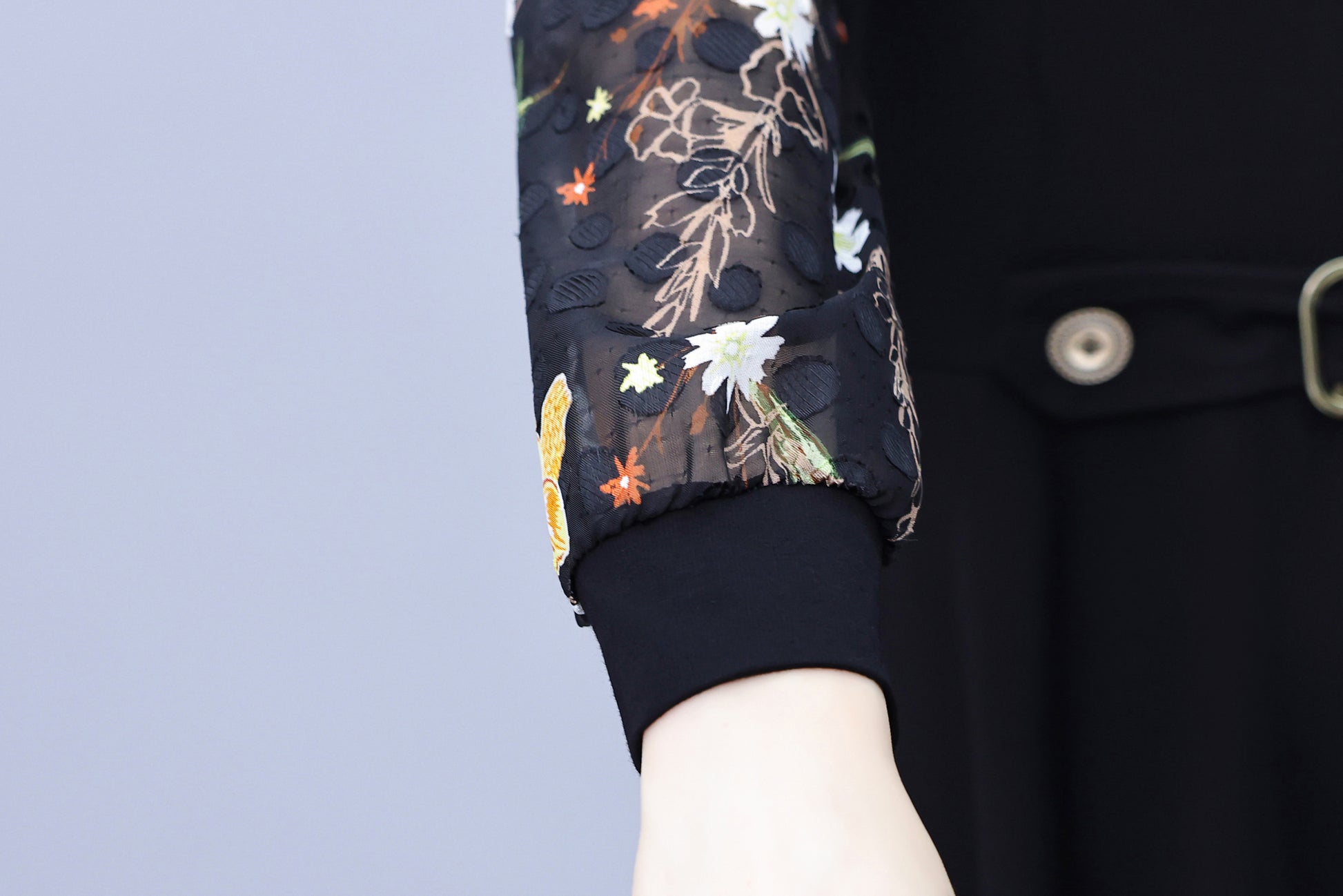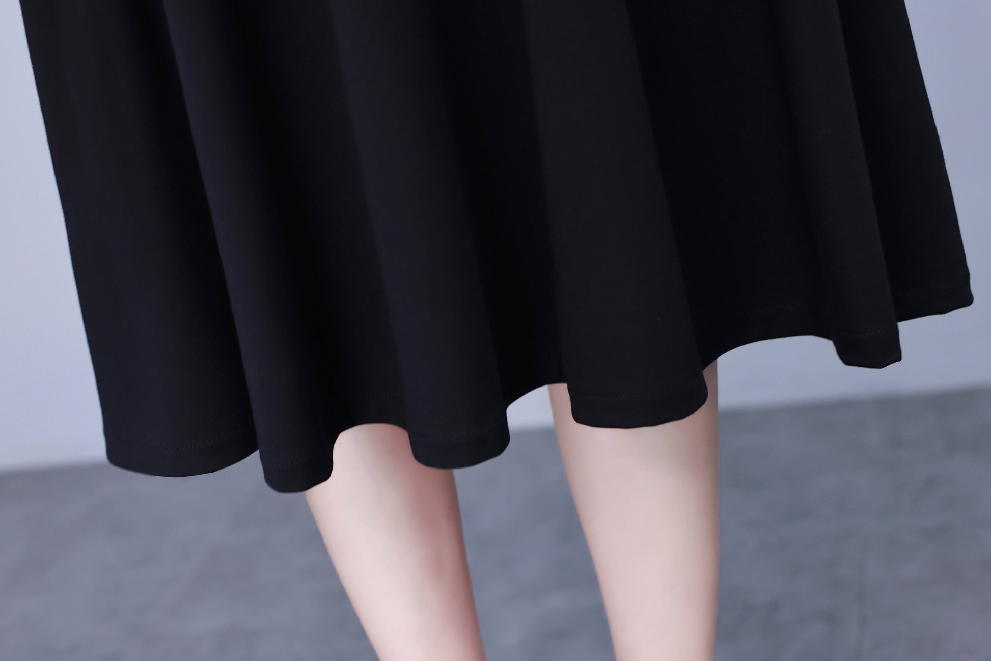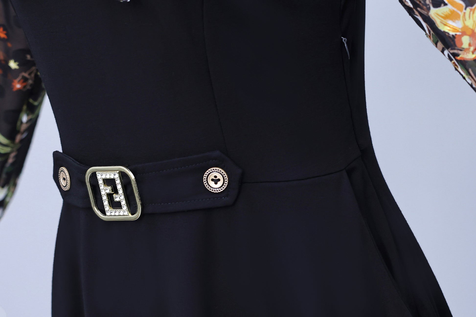• Features:Black dress,Patchwork design,V-neck,long sleeve,A-line,Two Pocket,Side Zip,Elegant,Midi Length.
