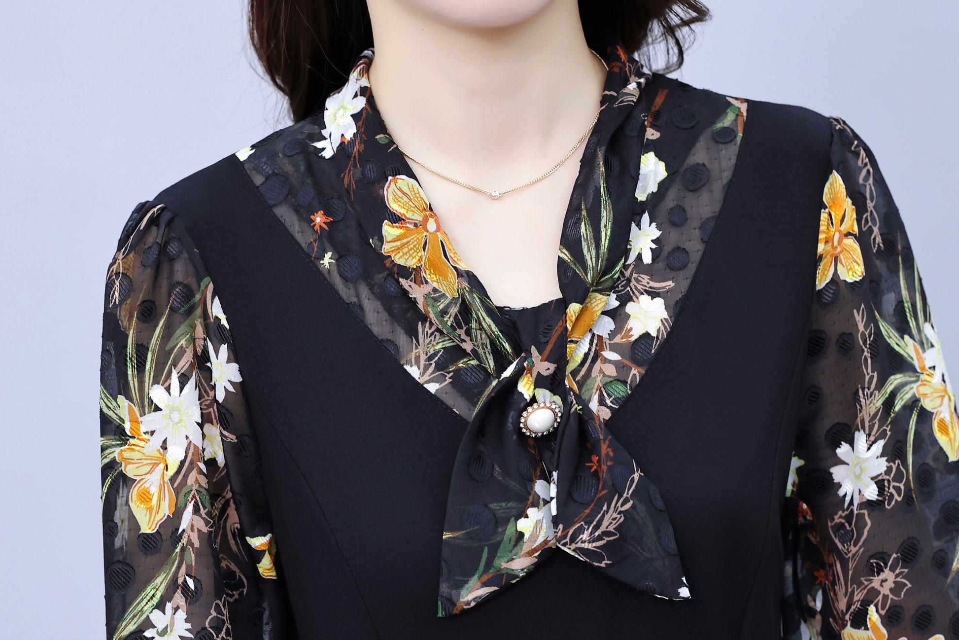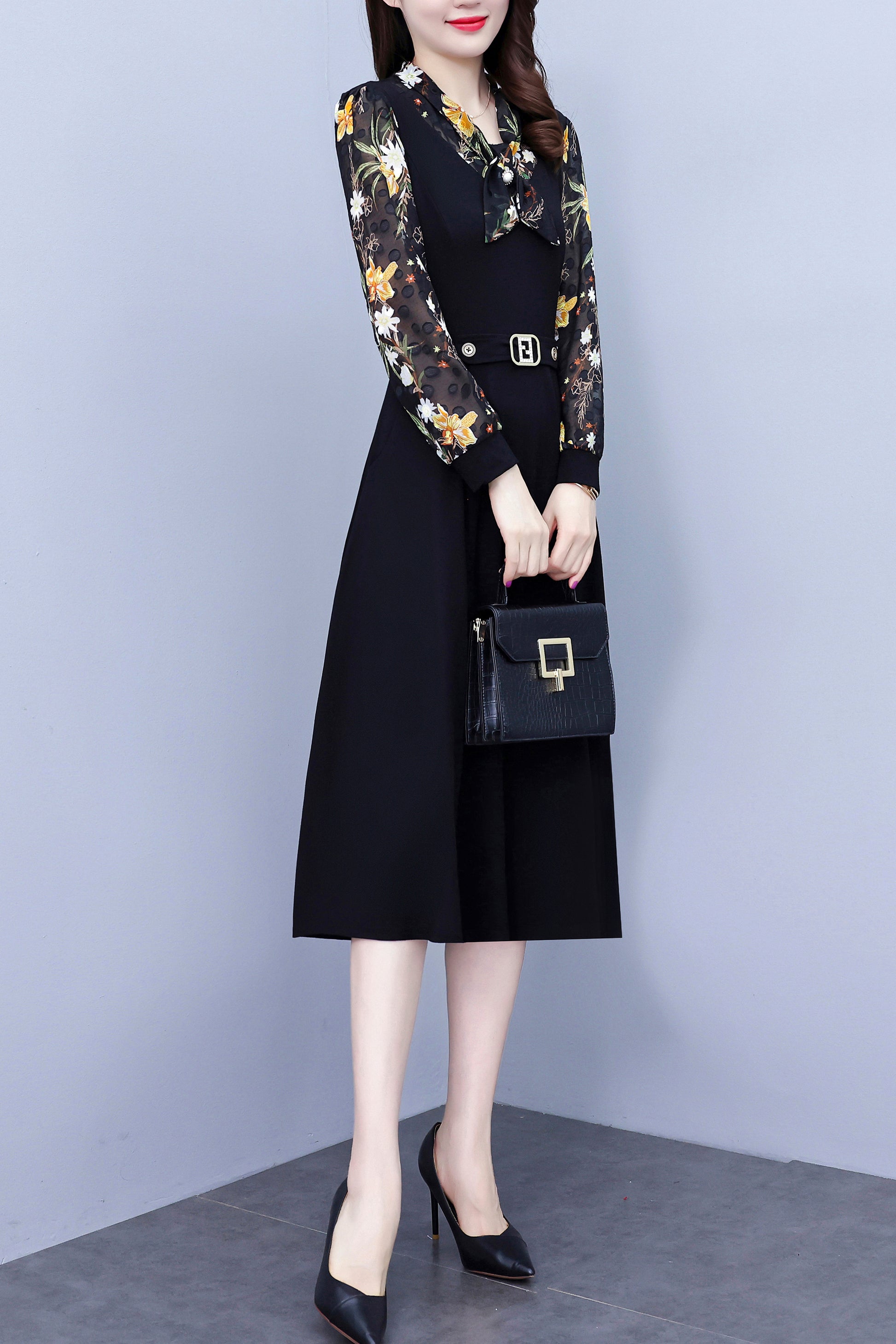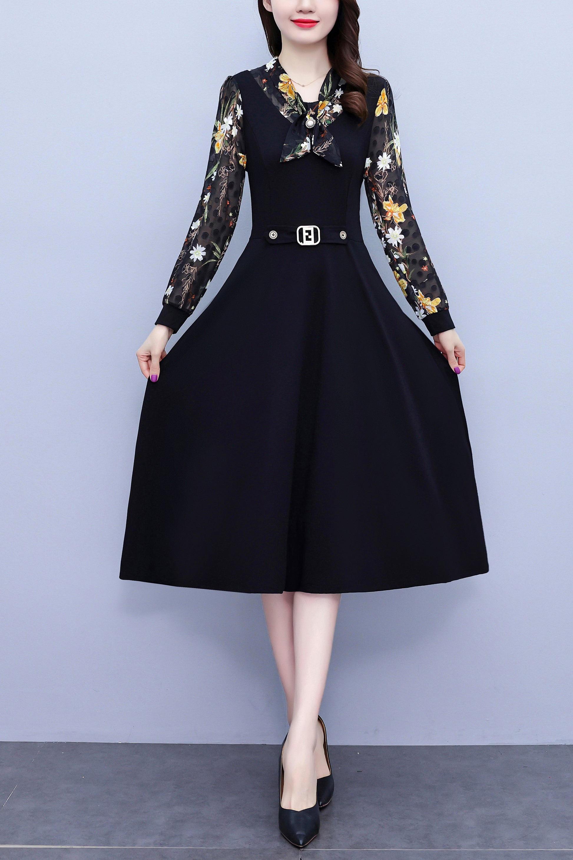 • Elegant dress:2025 fashion dress/midi dress/patchwork dress/floral print dress/mom elegant dress/spring long sleeve dress/black dress/wedding dress/floral dress for women.