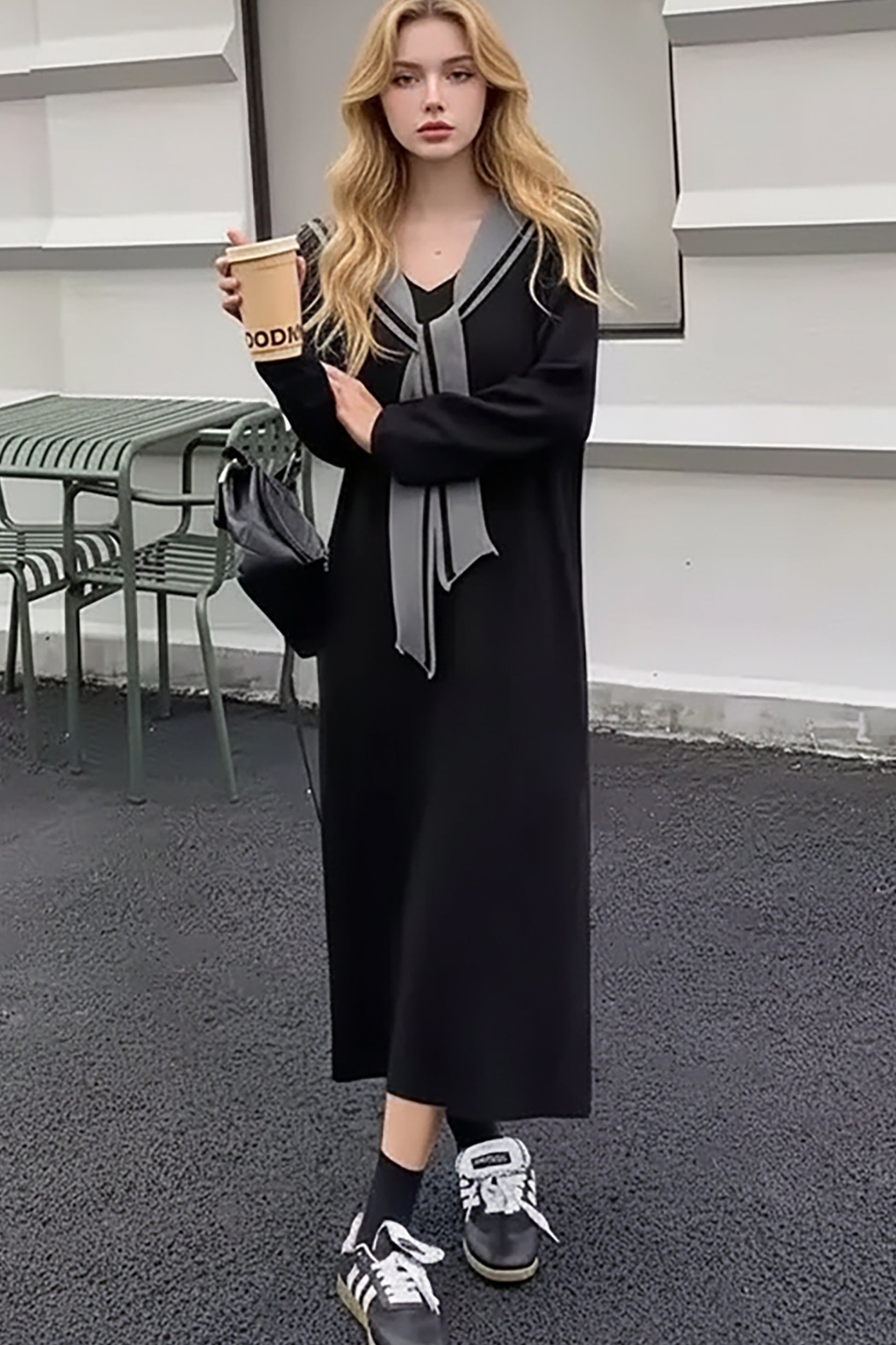• Features: V-neck, sailor dress, long sleeves, striped design, slim fit , comfortable soft knitted dress, autumn knitted dress, base dress for autumn and winter.