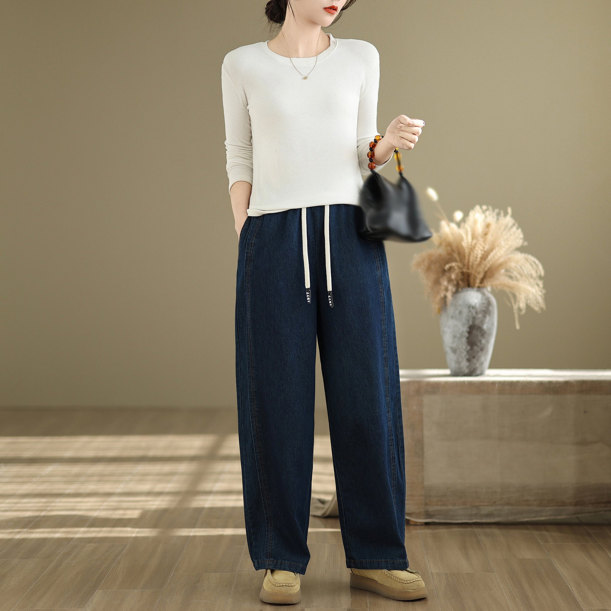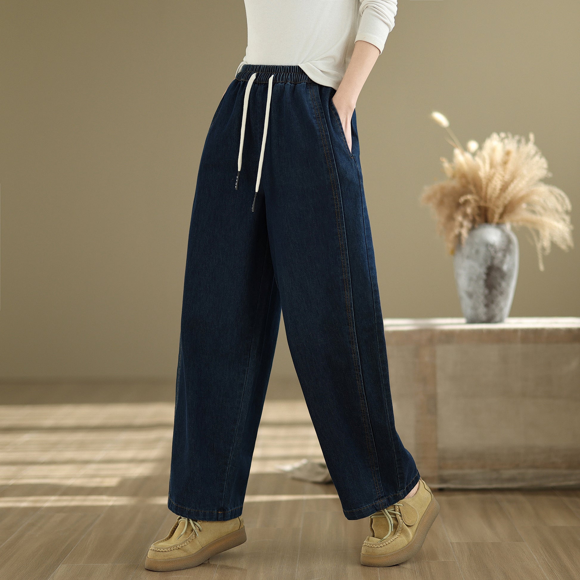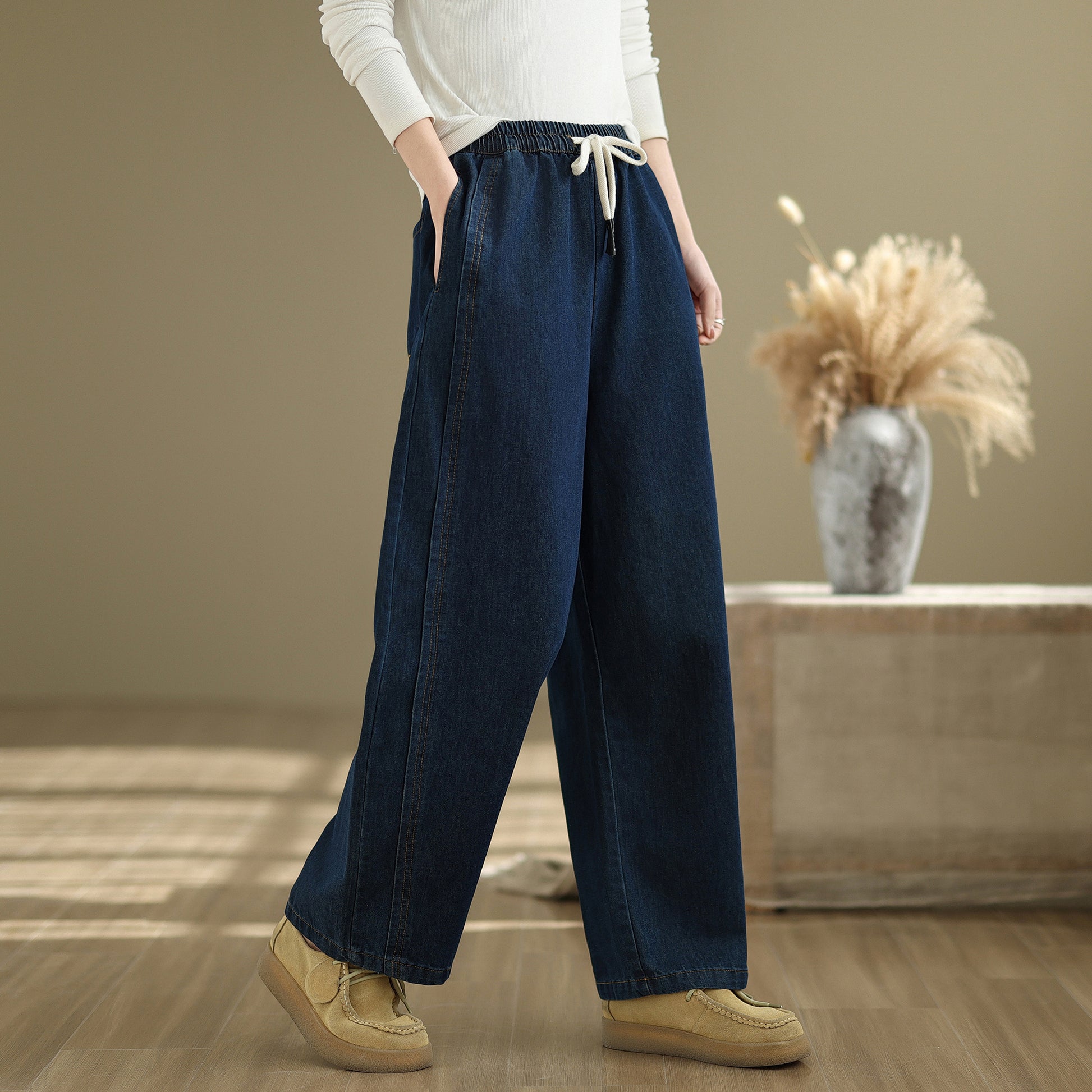 Women's Wide-Leg Jeans Elastic Waist Drawstring Pants