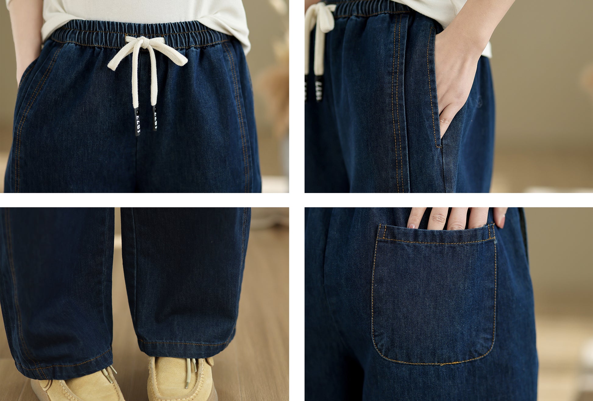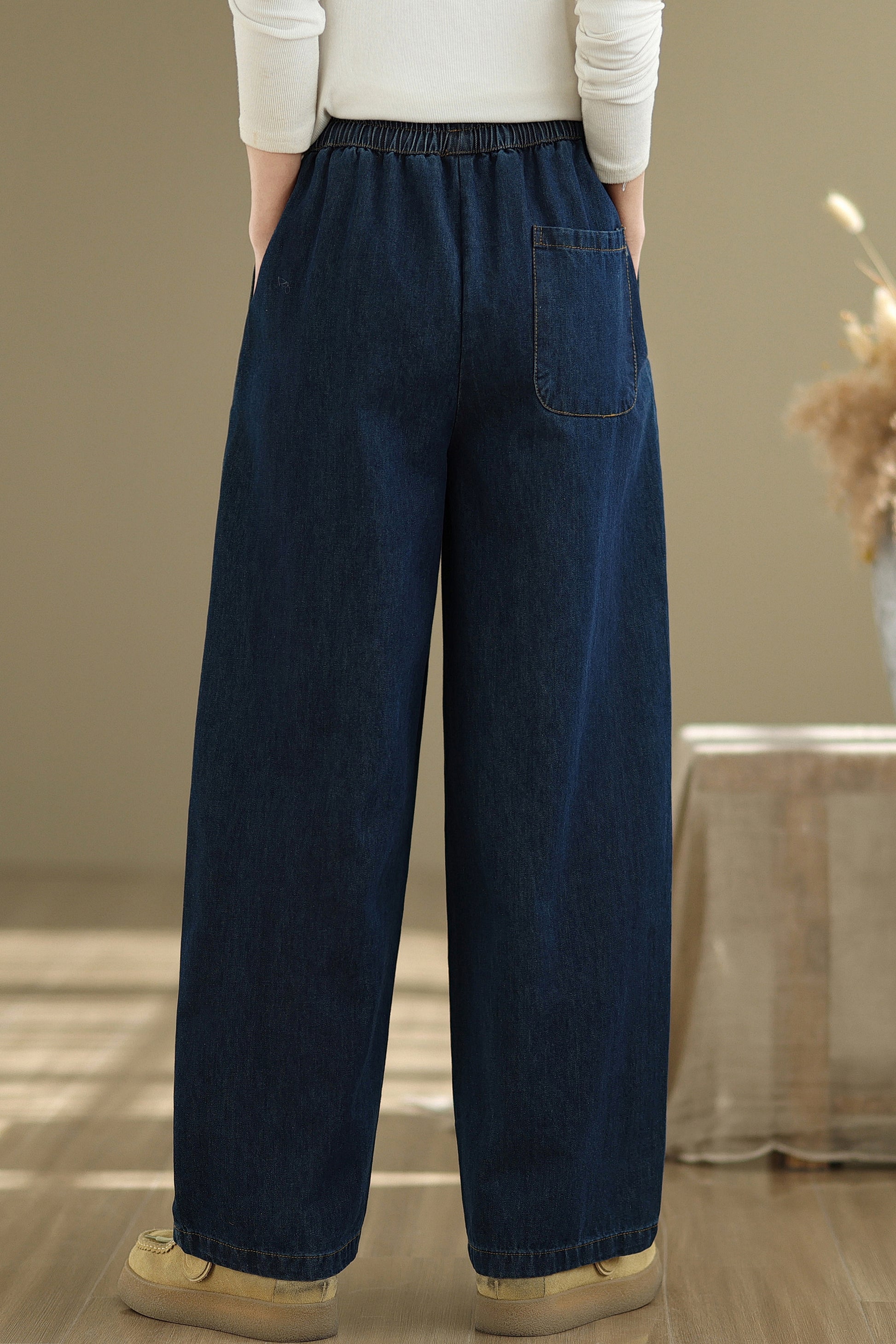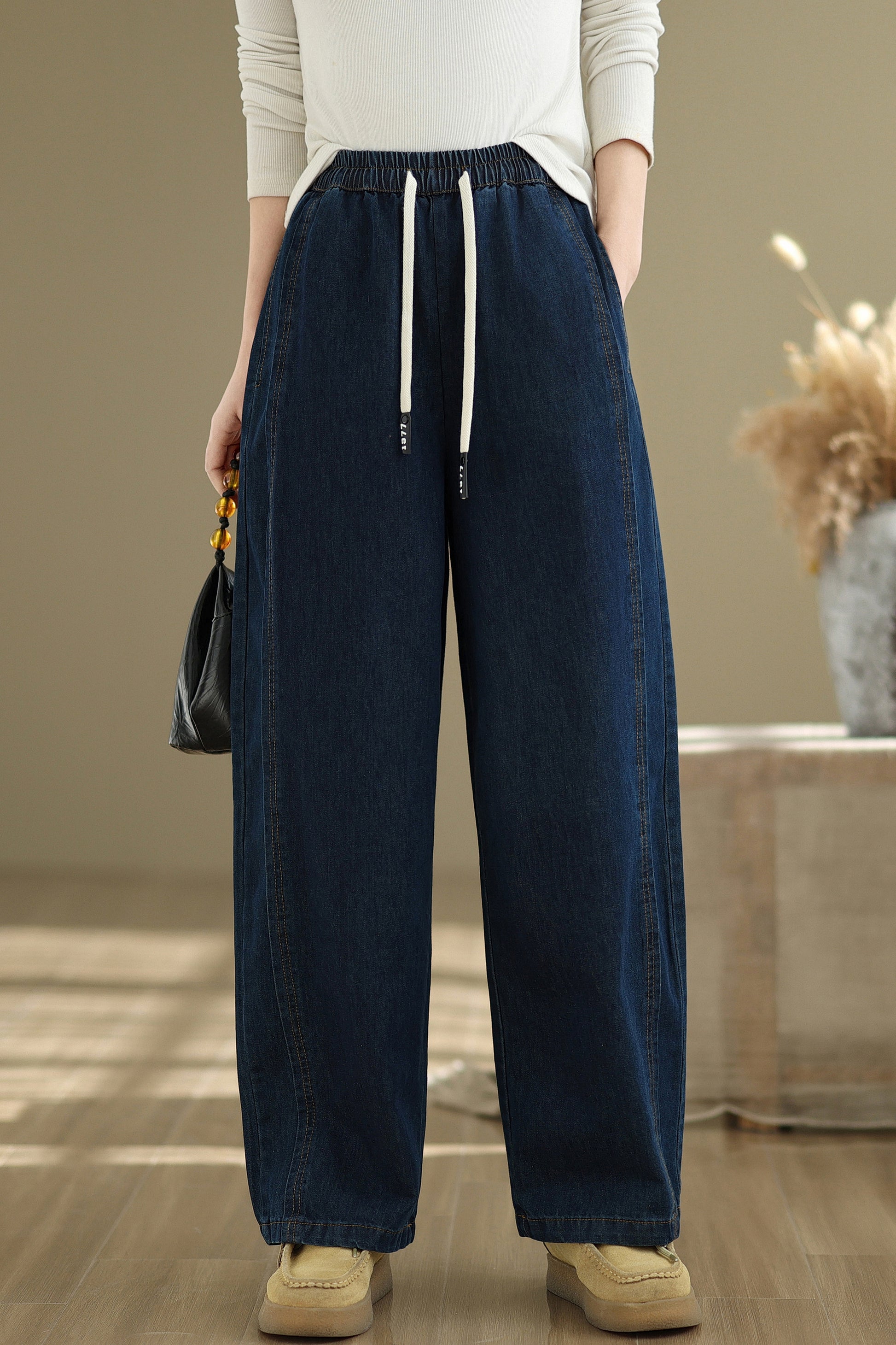 • Features: Elastic Waist,Wide-leg,drawstring,denim,Side Pockets,Length pants, Classic denim,Elegant,Casual Loose fit.