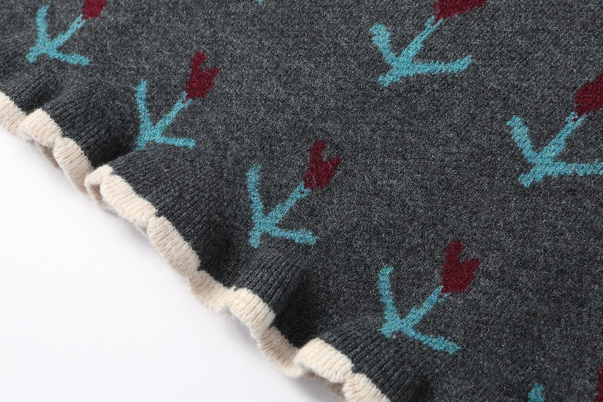 Women's Wool Sweater Drawstring Waist Print Knit Midi Dress
