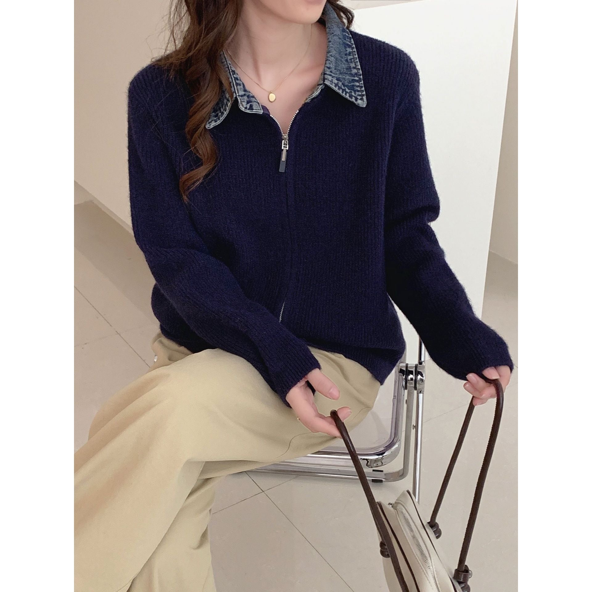 Features: Polo denim collar,two-way zipper, knitted sweater, V neck sweaters for women,solid color sweater,ribbed knit sweaters cardigan,long sleeve cardigans,wear it as a casual sweatshirts or sweater top.Designed for creating an effortless beauty in spring/ fall/ winter.